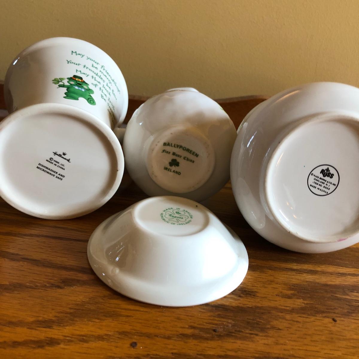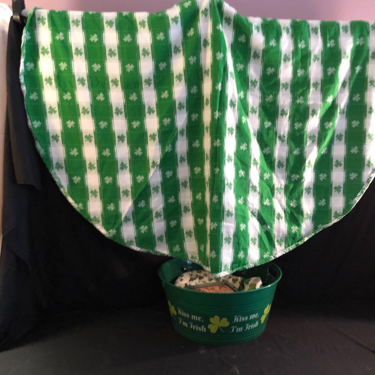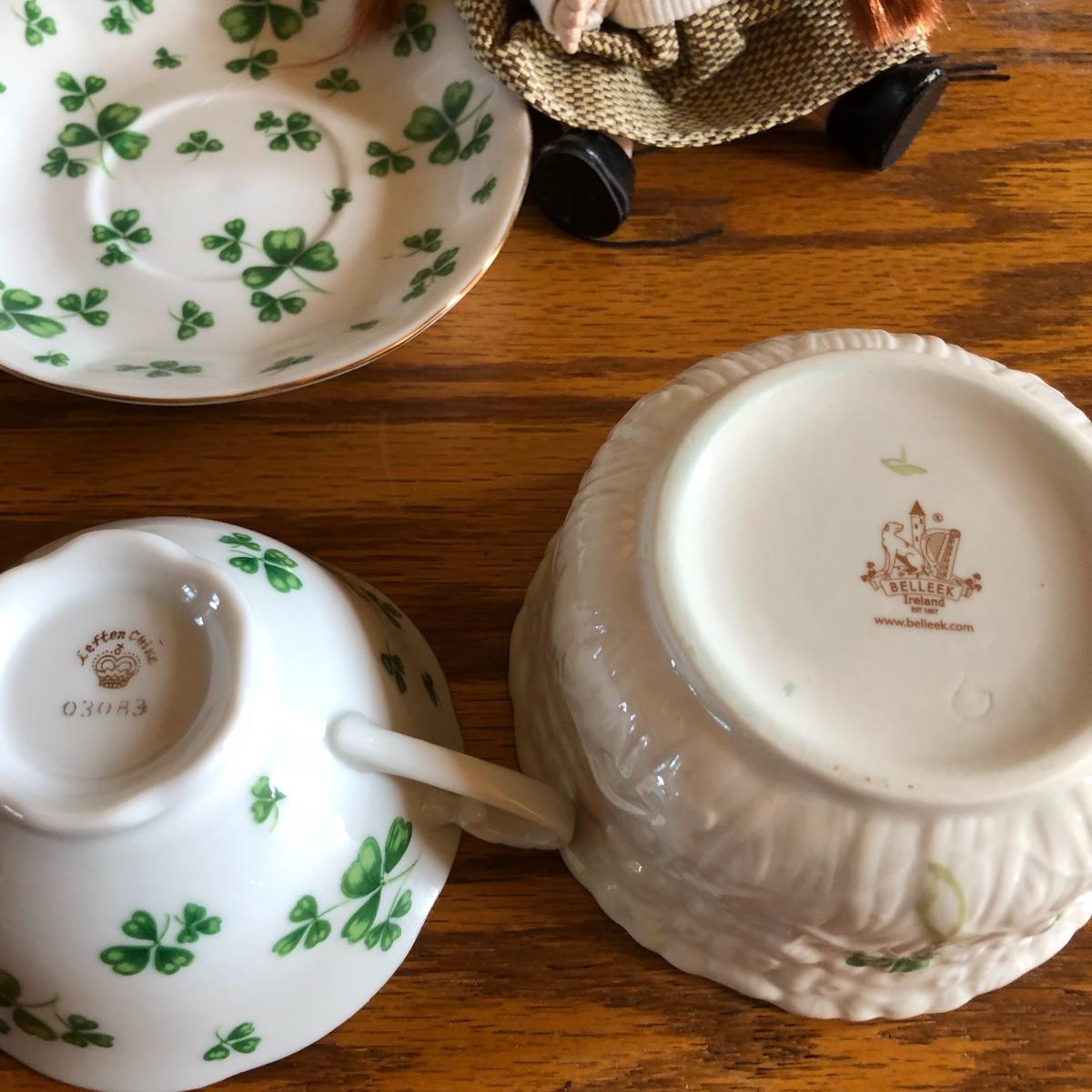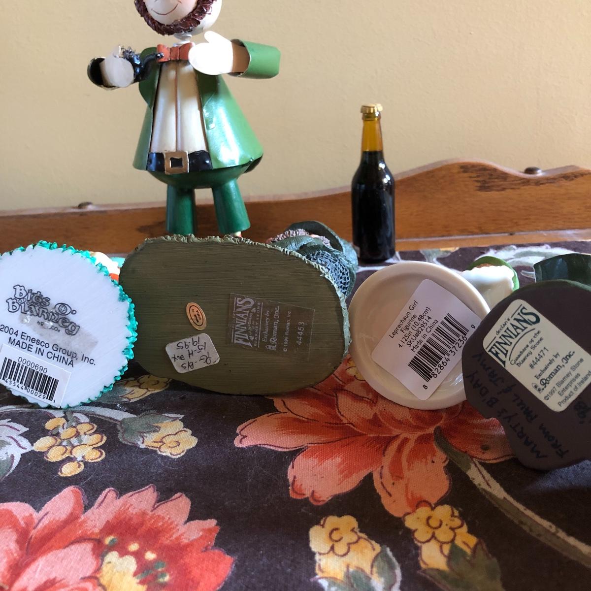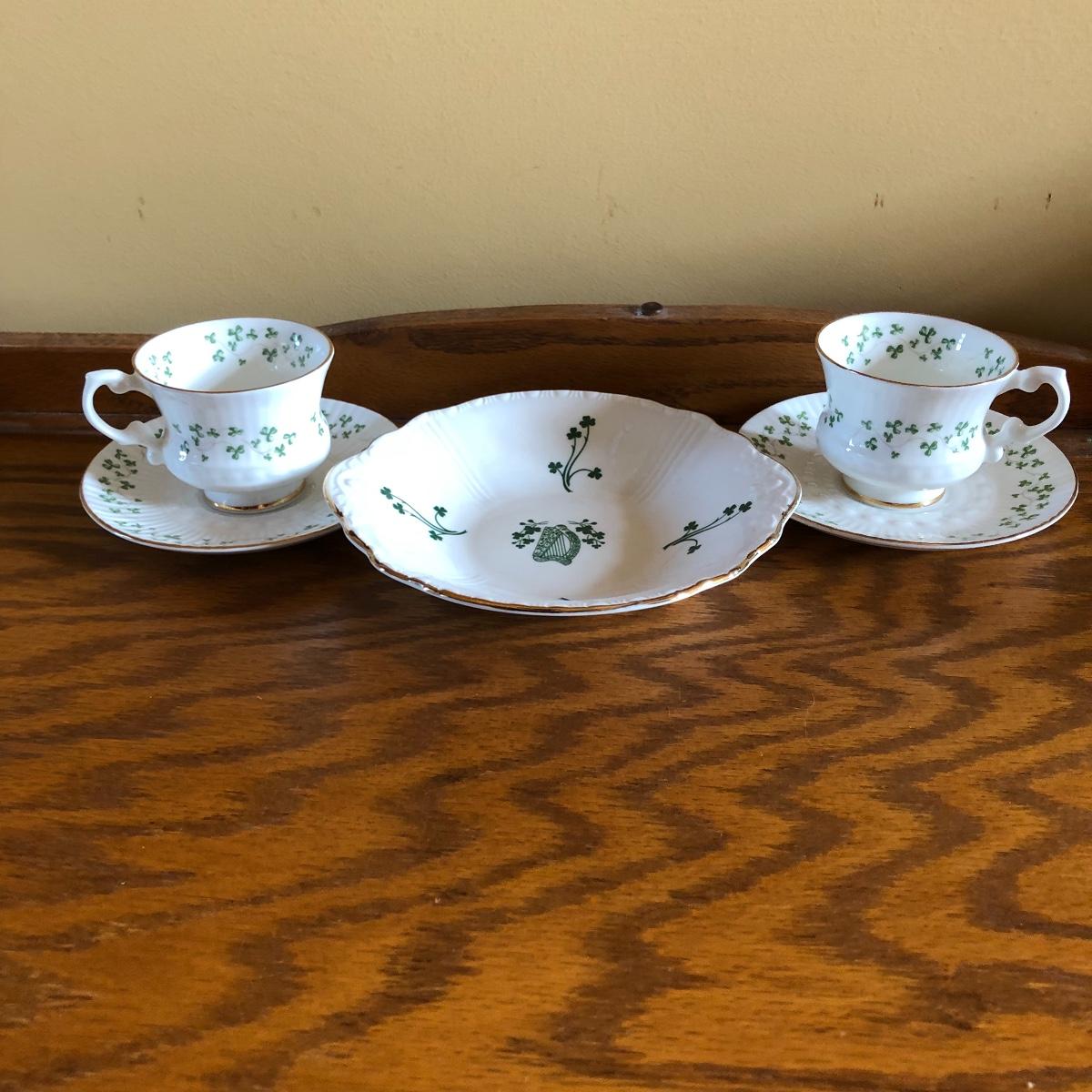 This lot will bring a smile to the face of any Irishman or Irishwoman! This lot includes China by Beeleek, Lefton and Japanese made. It also includes stone coasters, framed artwork, book, tablecloth, napkins, two porcelain decanters, and so much more. Frame measures 13.5” x 16.5”. The furniture pictured is not included in this lot; it is in lot 271.