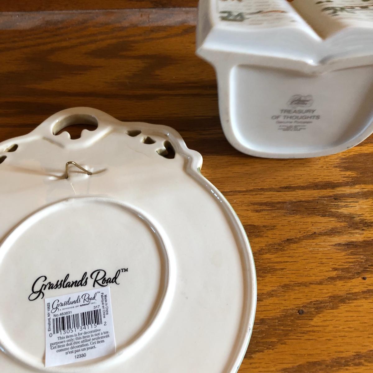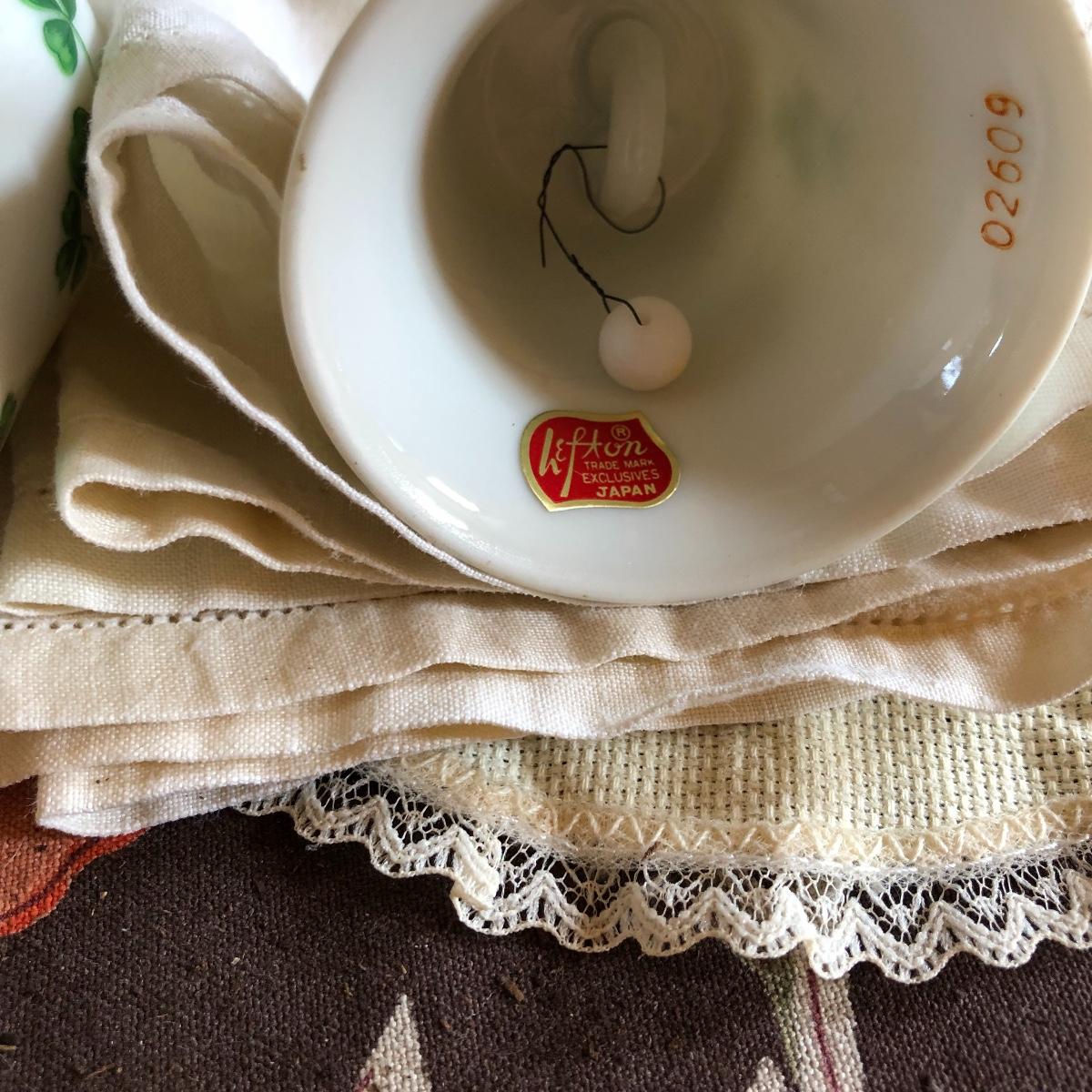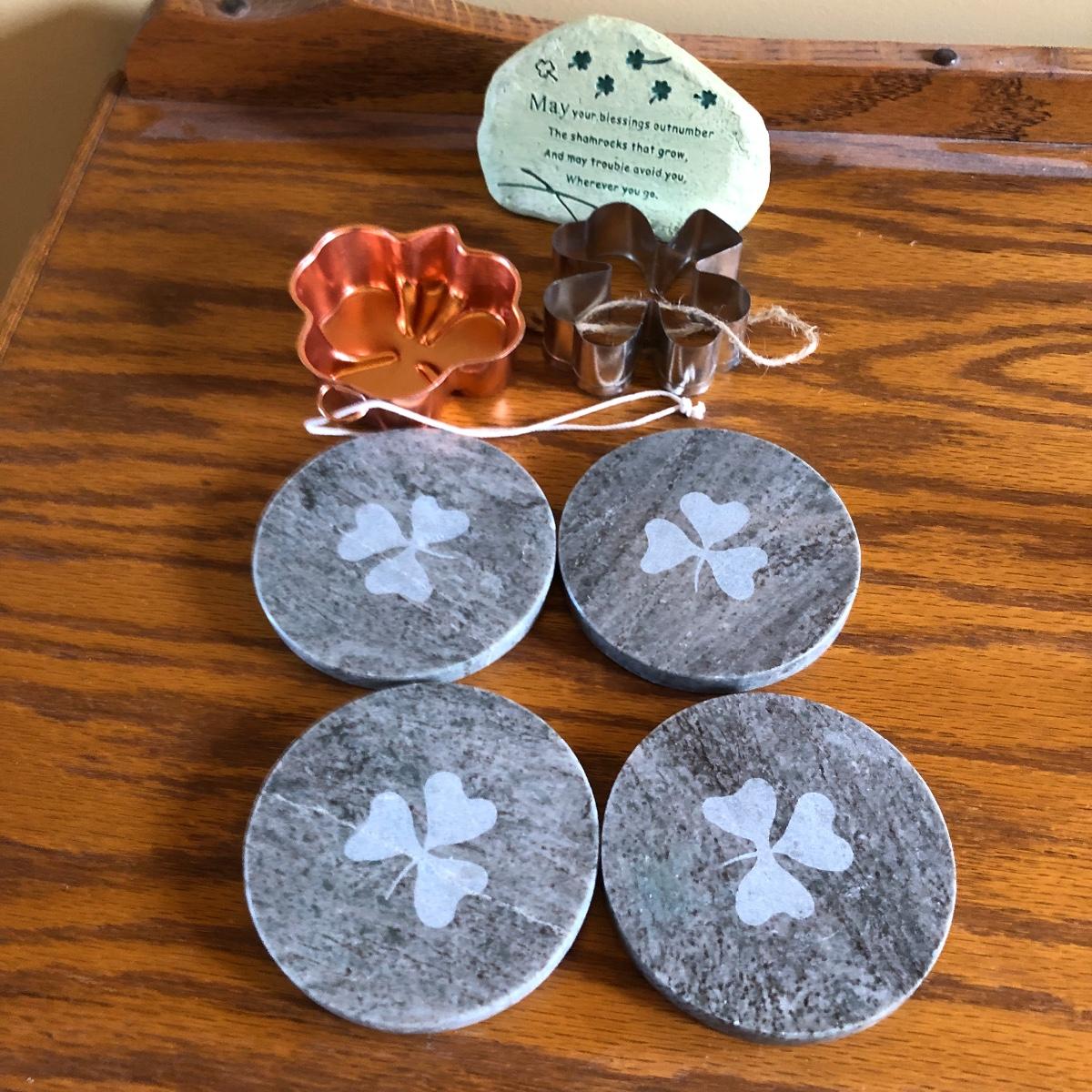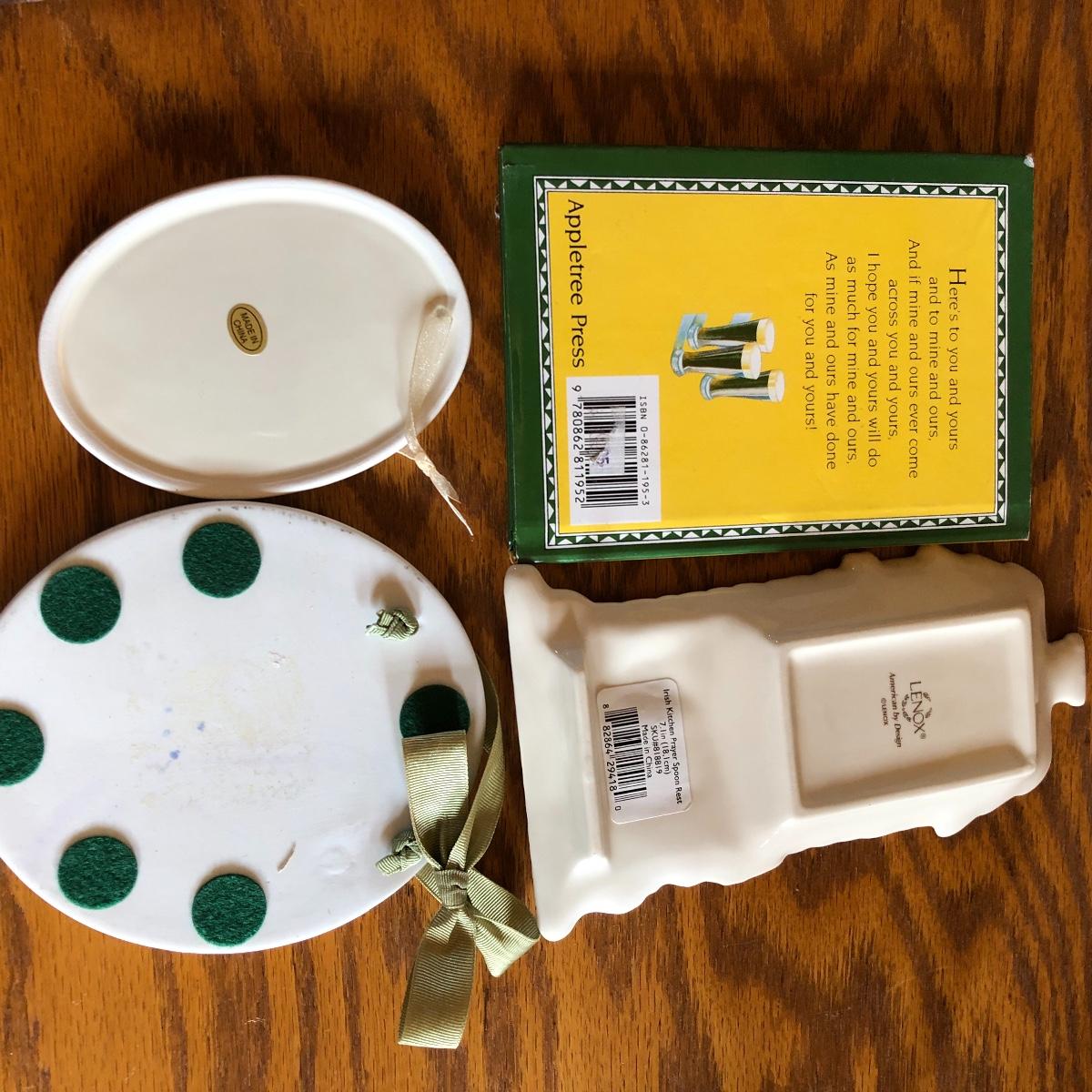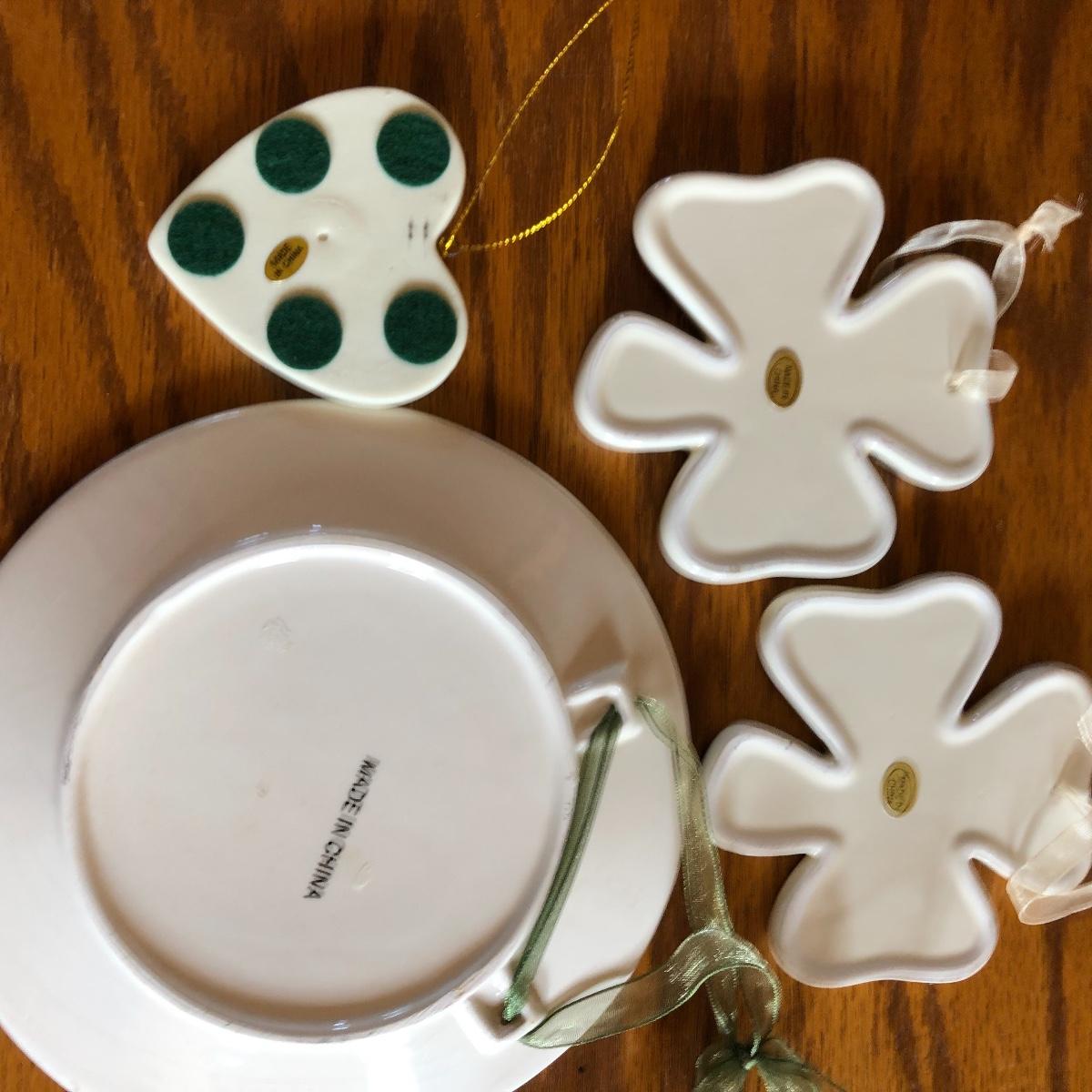 This lot will bring a smile to the face of any Irishman or Irishwoman! This lot includes China by Beeleek, Lefton and Japanese made. It also includes stone coasters, framed artwork, book, tablecloth, napkins, two porcelain decanters, and so much more. Frame measures 13.5” x 16.5”. The furniture pictured is not included in this lot; it is in lot 271.