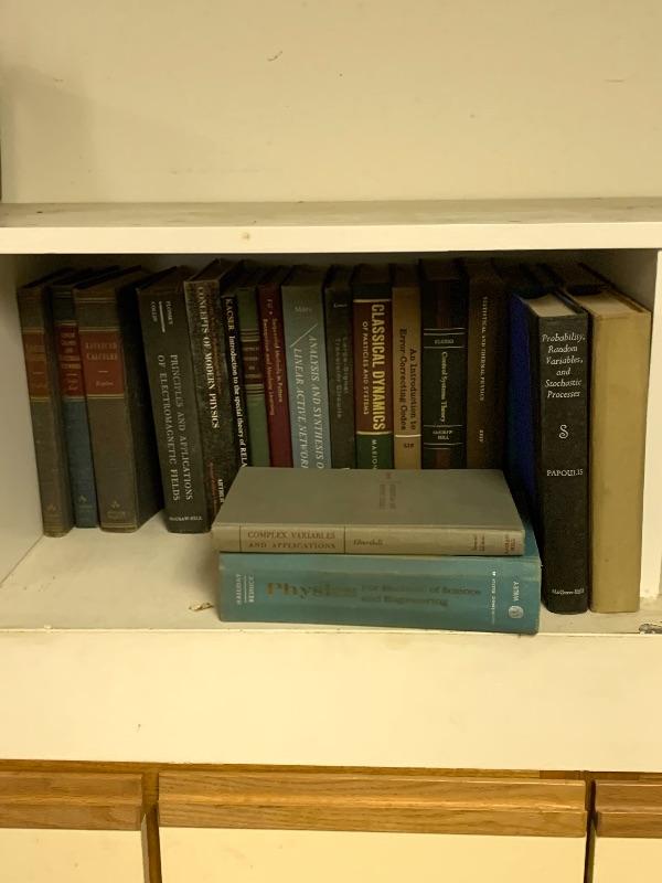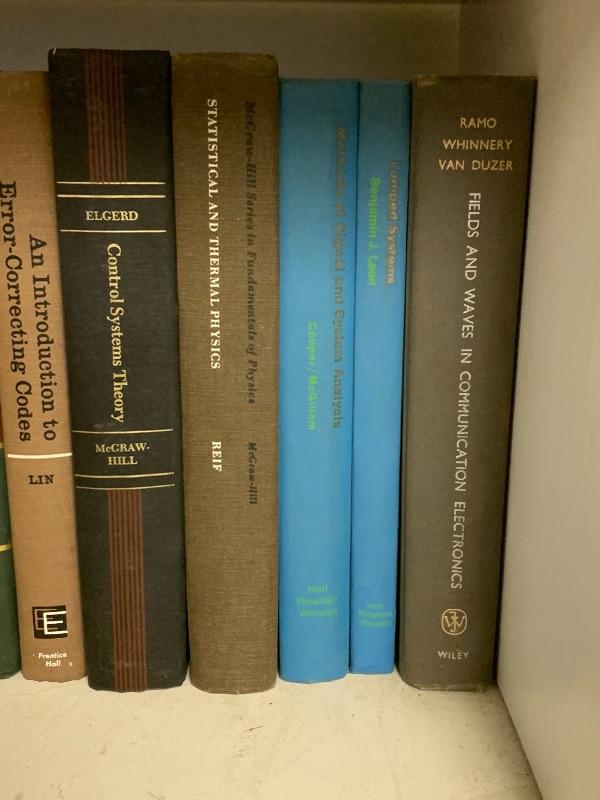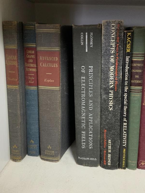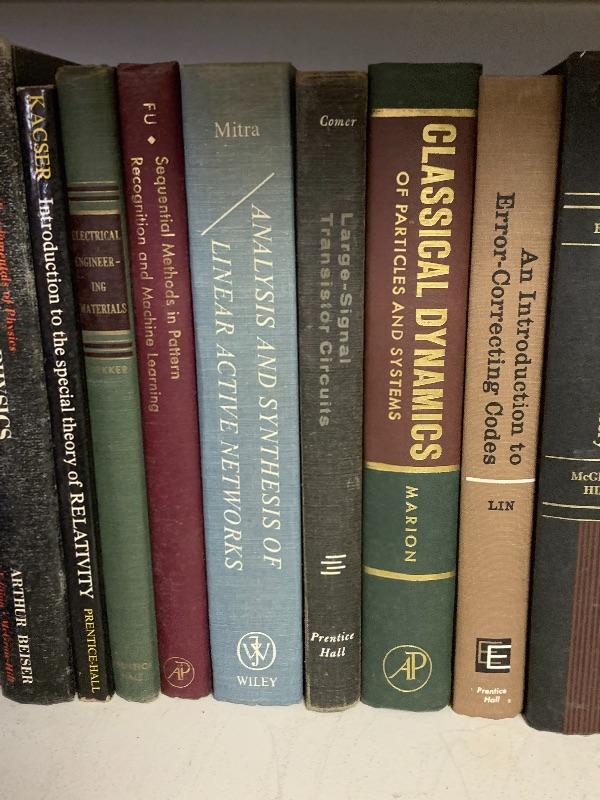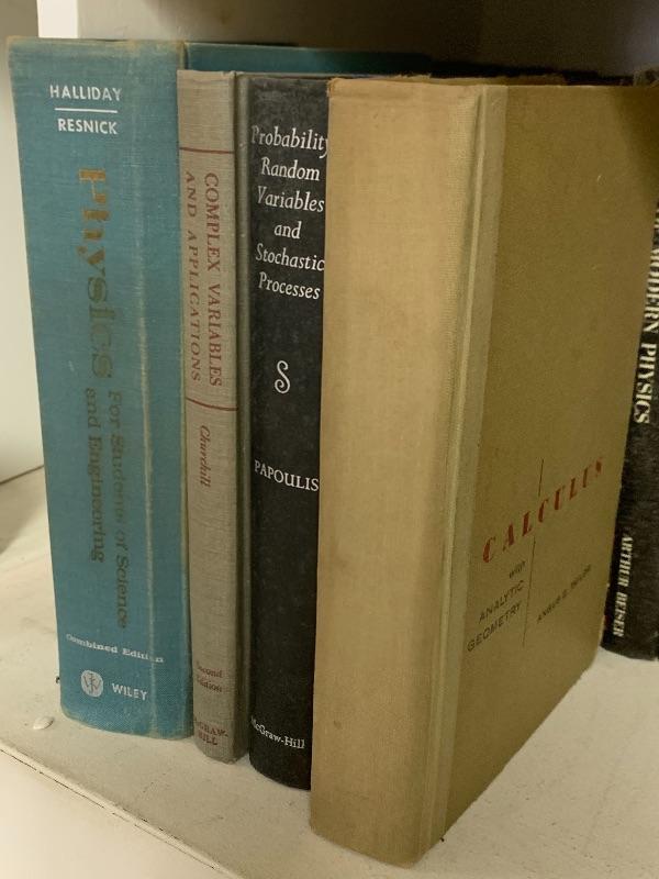 Lot of 20 hardcover (and one paperback) math books. Including Physics for Students of Science and Engineering, Fields and Waves in Communication Electronics, An Introduction for Error-Correcting Codes, Introduction to the Special Theory of Relativity, Advanced Calculus, and more.