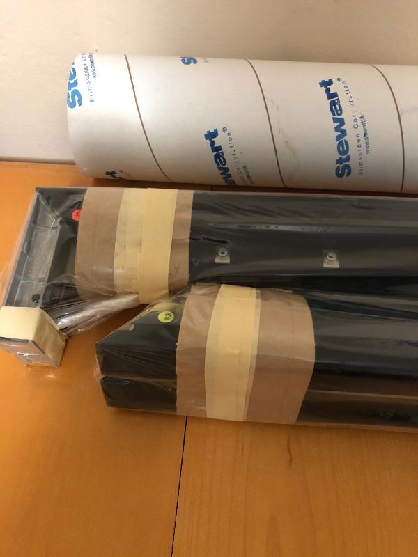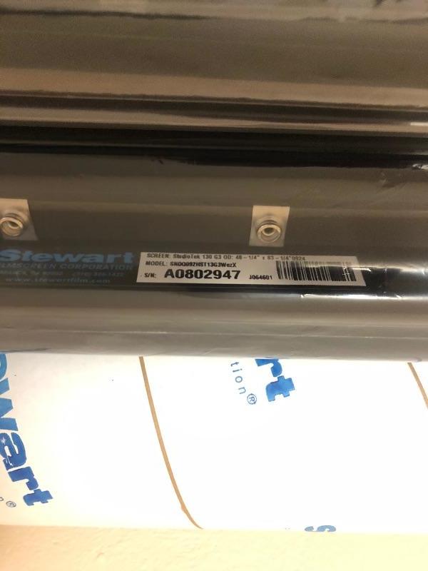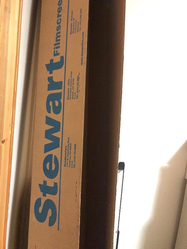 Brand spanking new in the box Stewart Film Screen by Studio Tek. See photos for model numbers. Measures 48.25” x 83.25”.