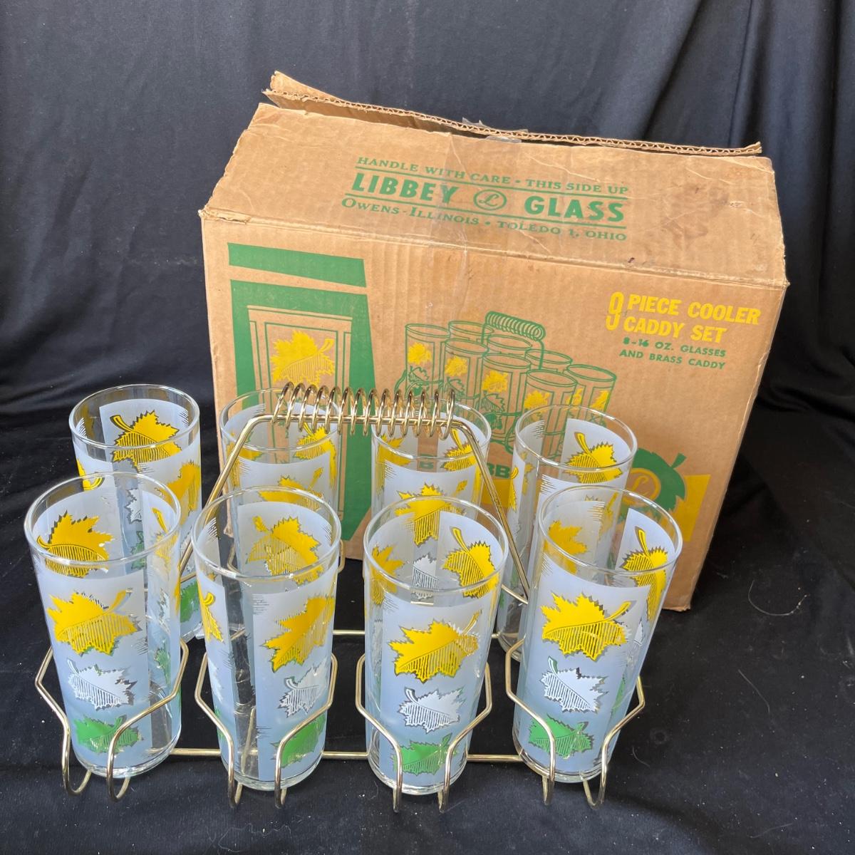Lot 269 Vintage Libby tumbler set with rack NIB