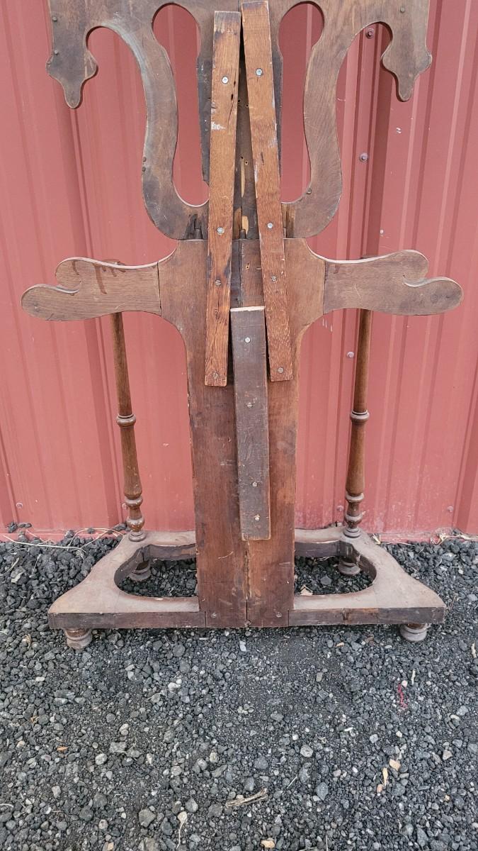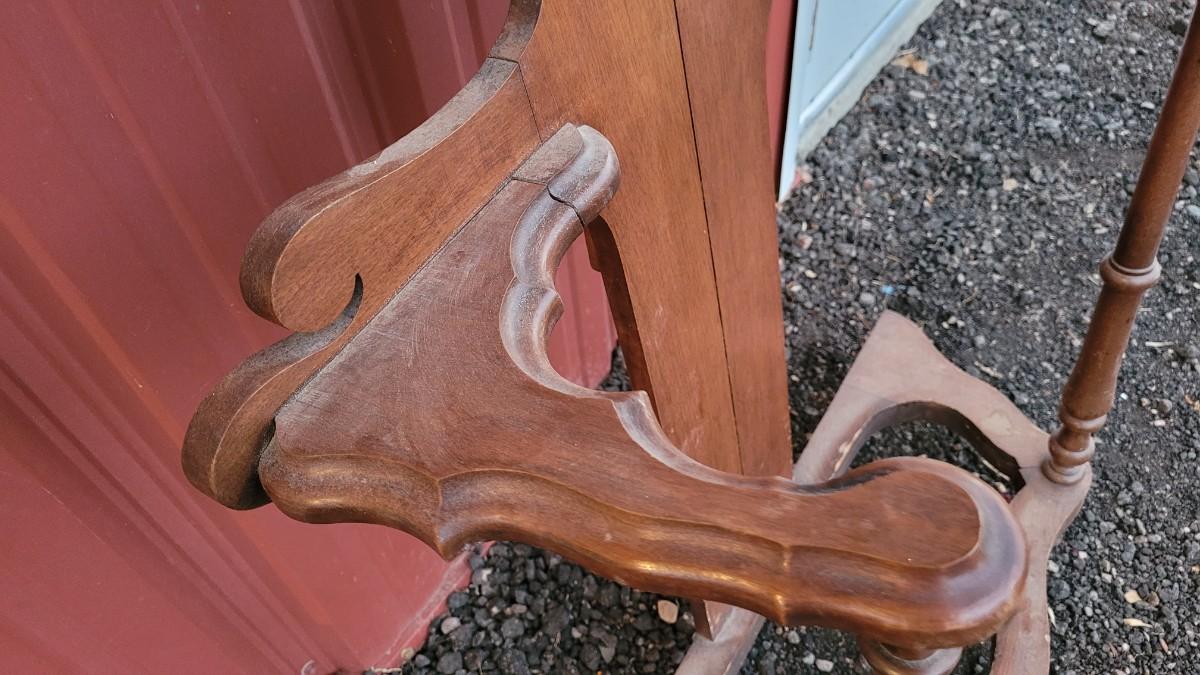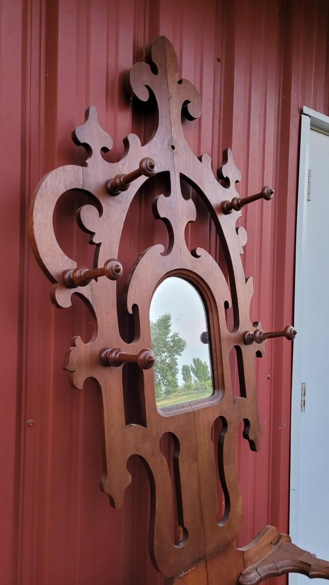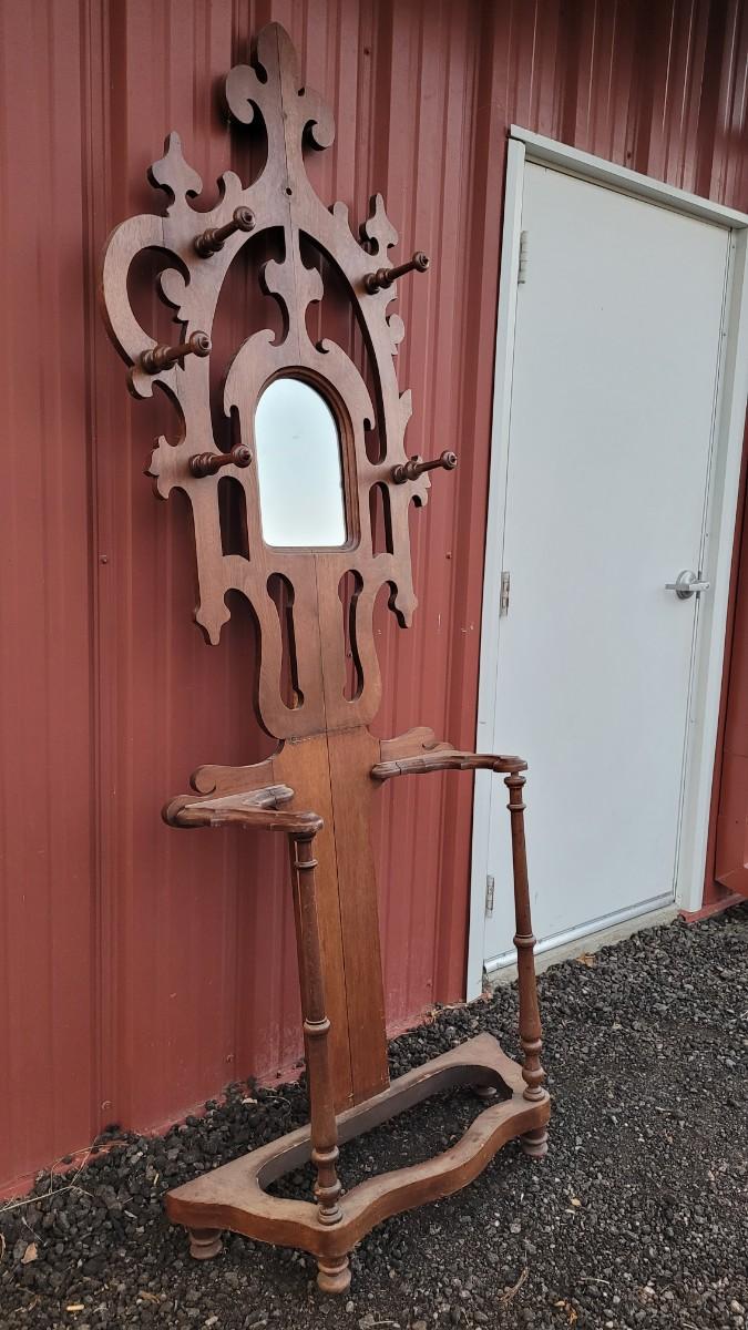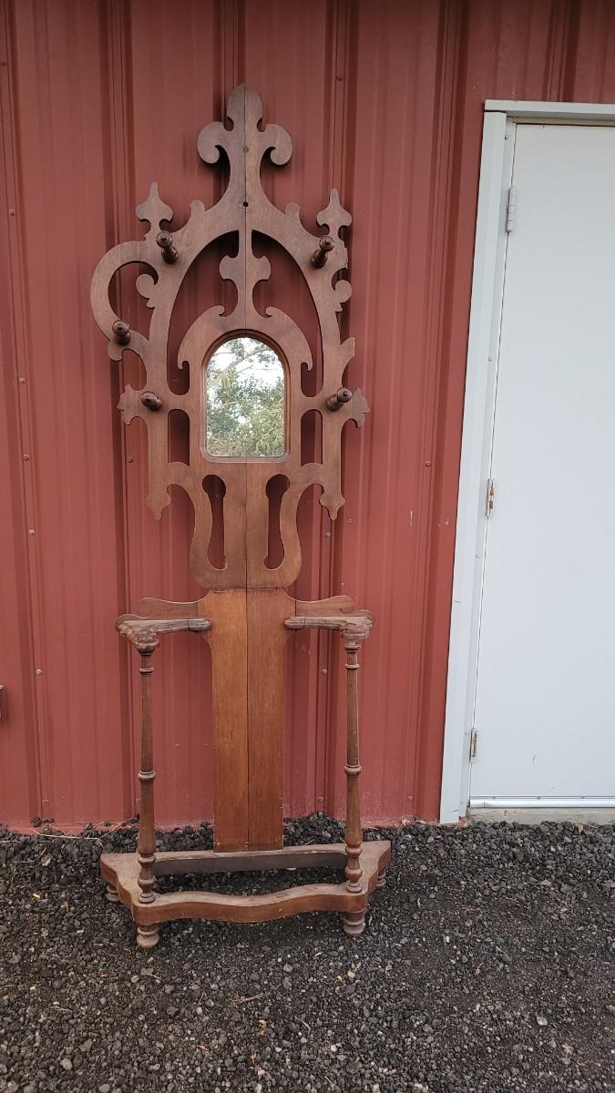 Lot 269: Antique Farmhouse MAHOGANY Entryway Tree (has damage but piece comes with to repair)