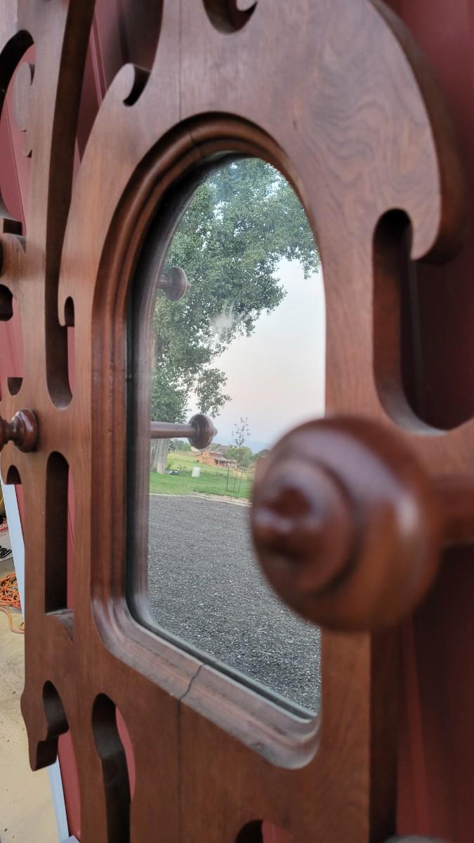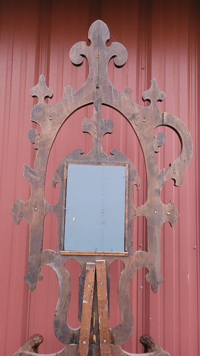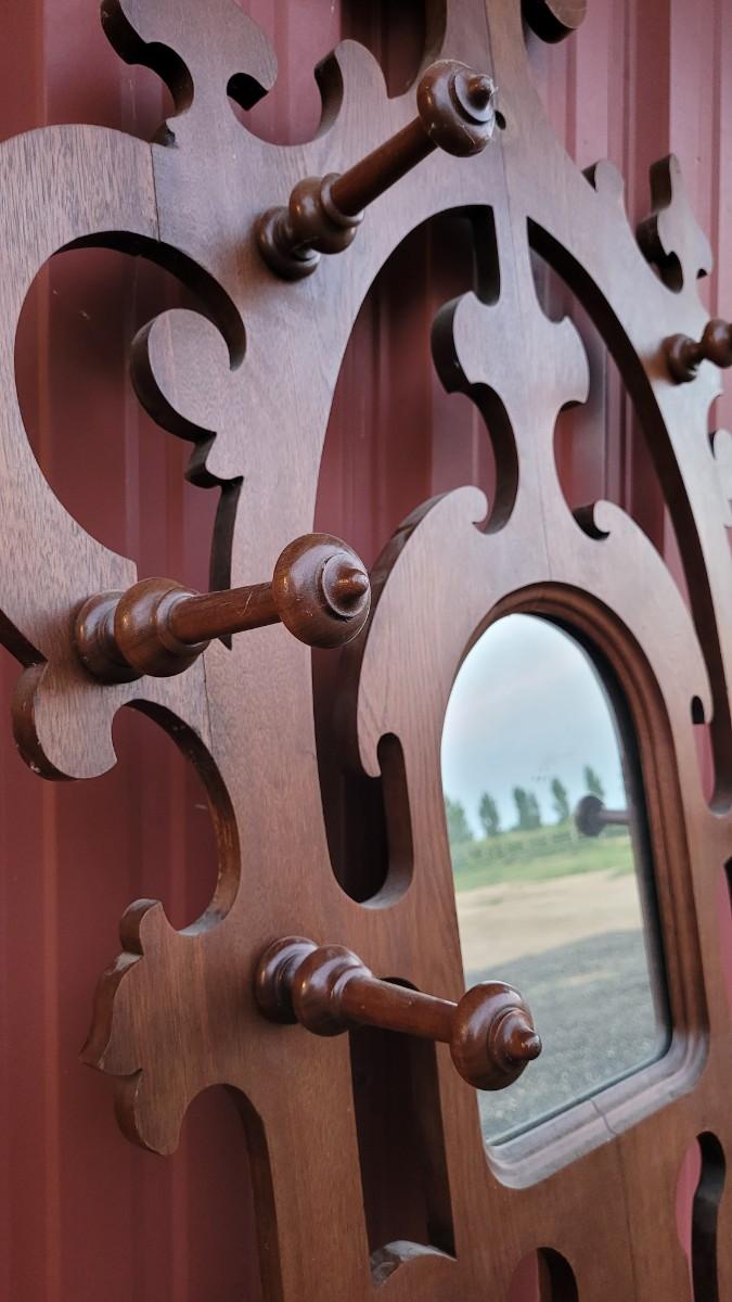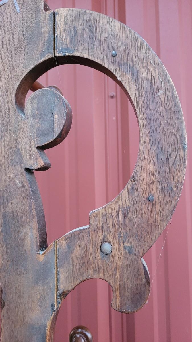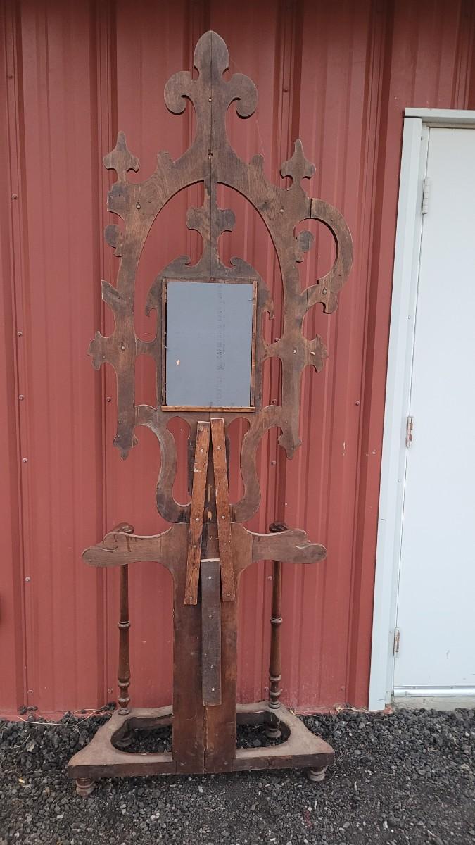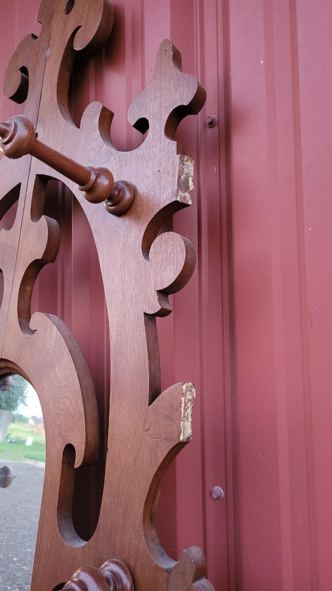 Lot 269: Antique Farmhouse MAHOGANY Entryway Tree (has damage but piece comes with to repair)