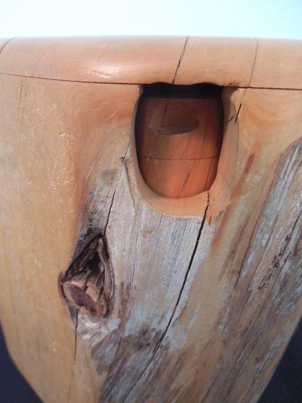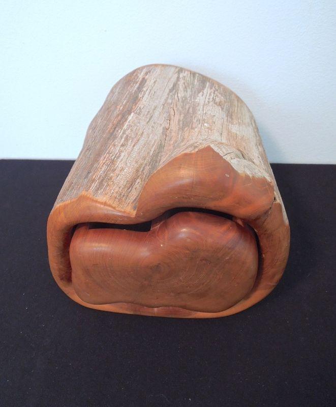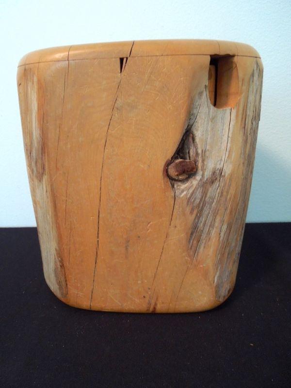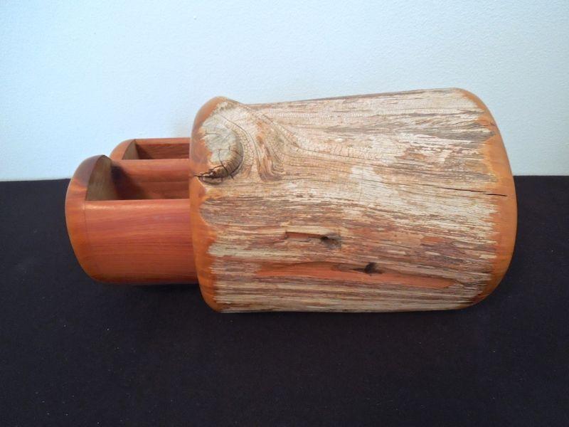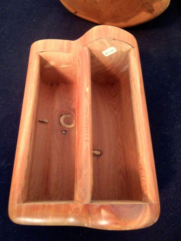 Hand rubbed and oiled edges. Drawer carved from section of Cedar tree. Has a hole for pushing drawer out. 9.5" L. Not signed. Burls on inside of drawer as shown in photo. No cracks or warped edges. Retains cedar aroma.