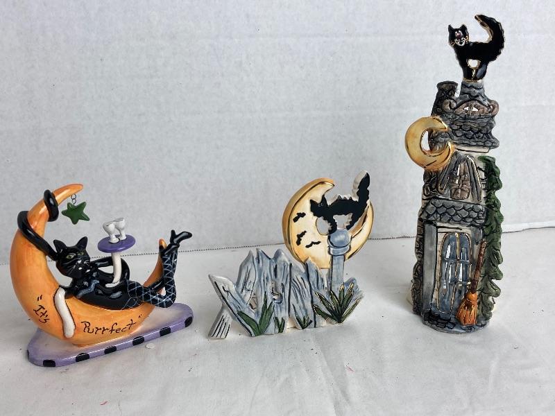 Lot #269 Blue Sky Clay Works Halloween Cat Tea Light Holders