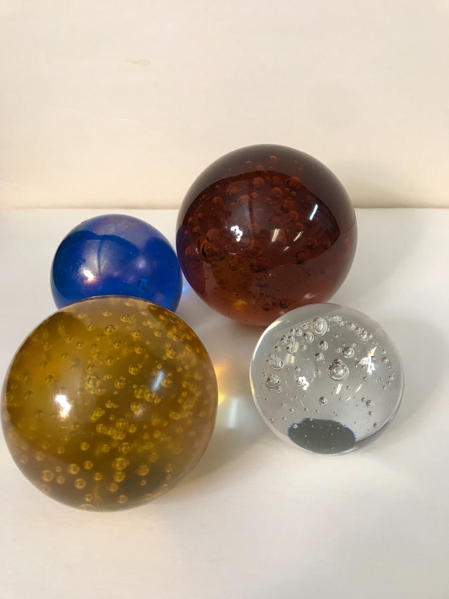 Glass Sphere Paperweights. Please see all pictures as they are the best representation of the items. The pictures show condition, measurements if taken, and what is included in the lot. Due to the large amount that we photograph and the time frame, we are not always able to take measurements. All items unless noted, are pre-owned and have been used. If you purchased furniture, you must bring help. We do not allow one person to carry large furniture out on their own. Bring help, tools and a truck for the safety of our client’s homes, and your personal safety. Company policy. Thank you.