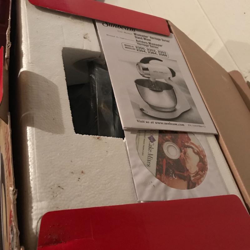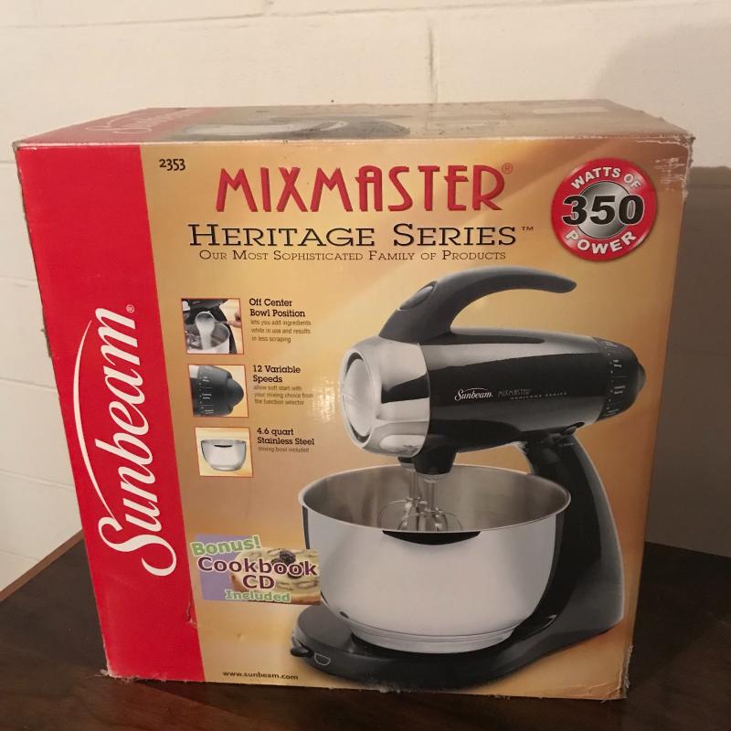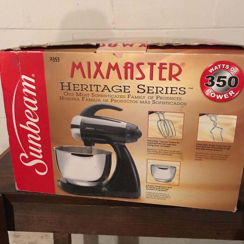 New-In-Box Sunbeam Mixmaster covers all your mixing needs! See photos for details. Local pickup only.