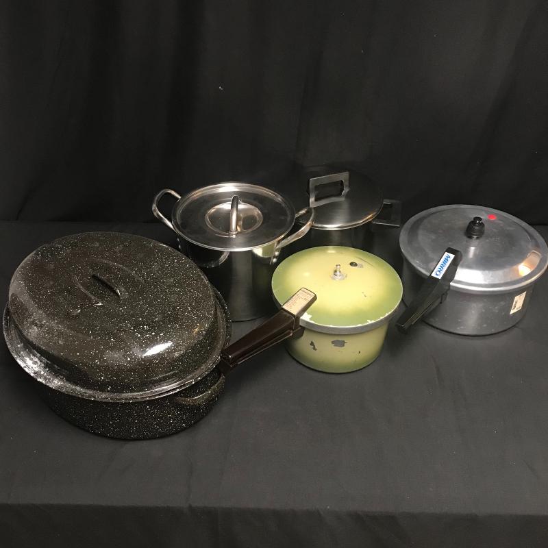 Roasting pan, two large stock pots and two pressure cookers. Local pick up only.