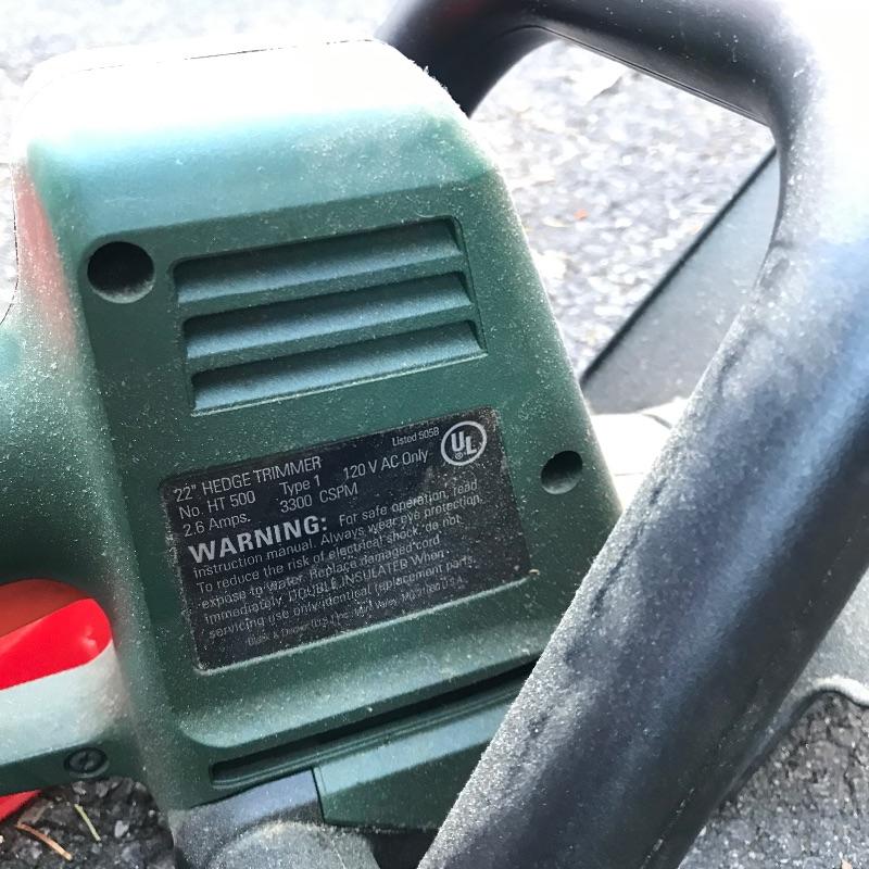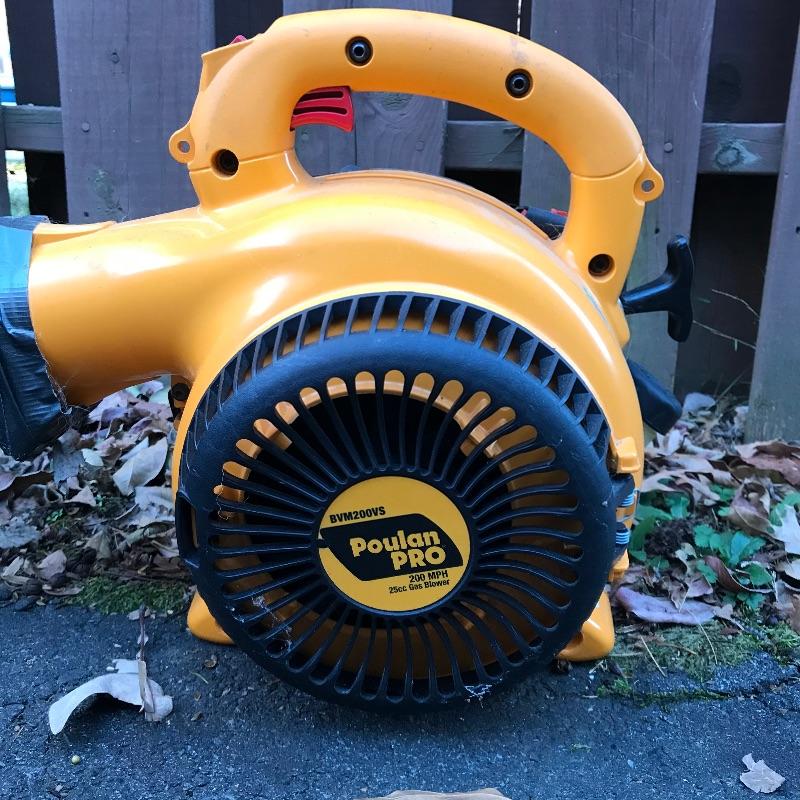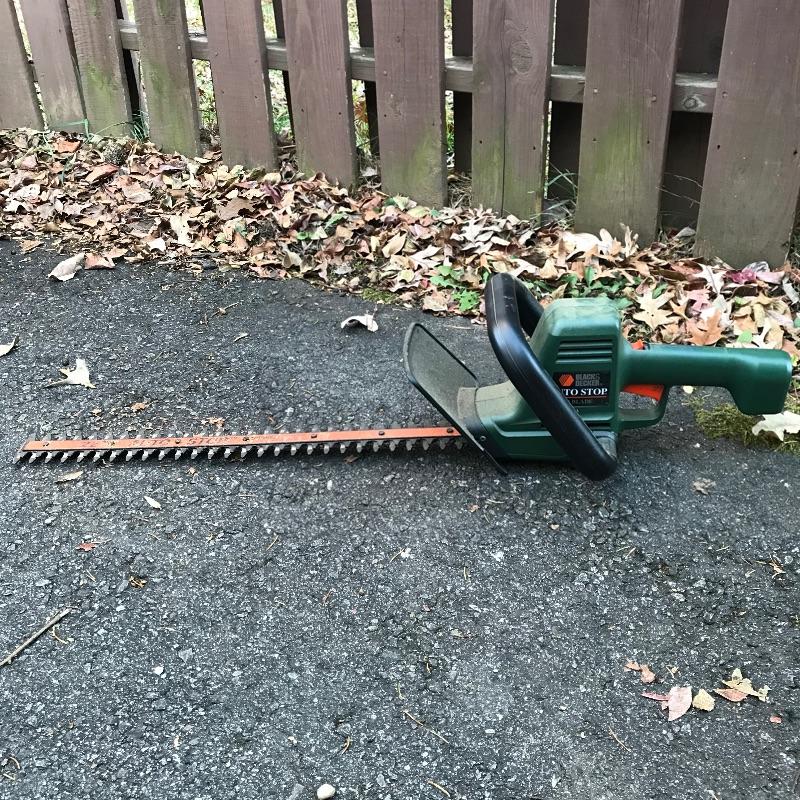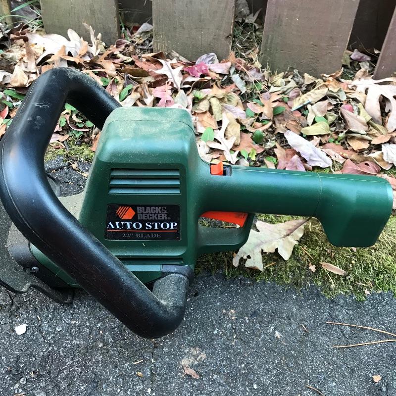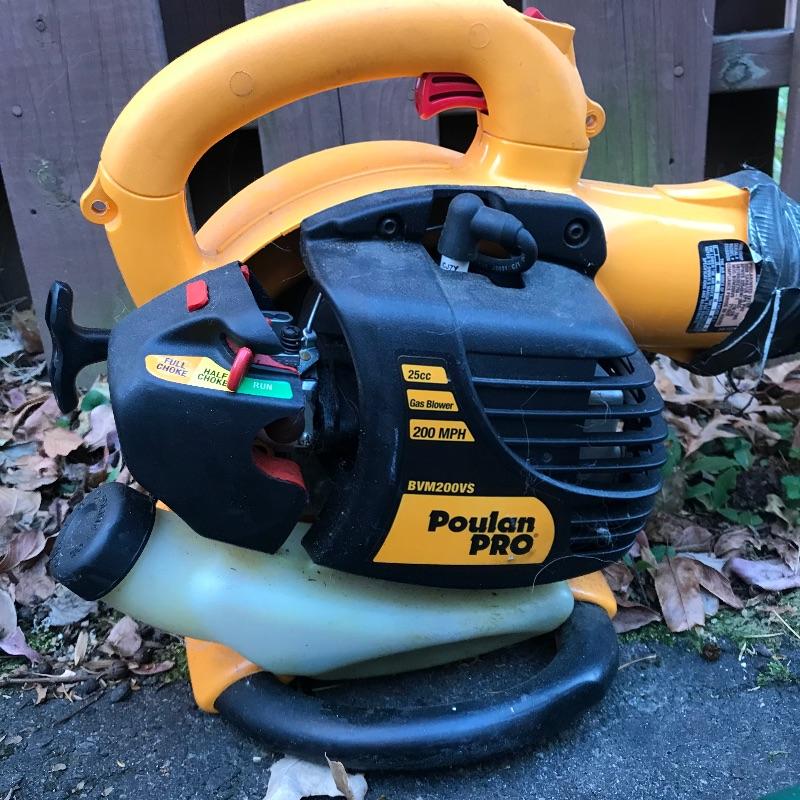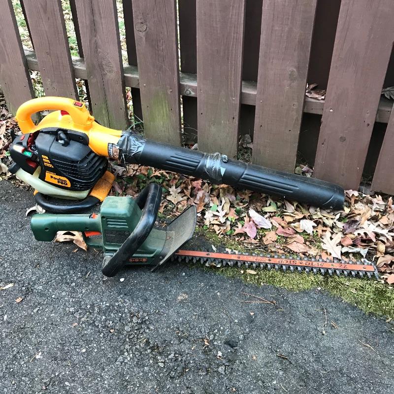 Feels like the leaves will fall forever, so be prepared with this Poulan PRO 200MPH gas powered blower. Model BVM200VS. Some duct tape is shown in photos, but doesn’t appear to affect working condition. We’ve also added a nice sized funnel for your gas filling convenience. Lot also includes a Black & Decker 22” blade electric hedge trimmer. Trimmer works well. Trimmer appears to work well when plugged in. See photos. No shipping.