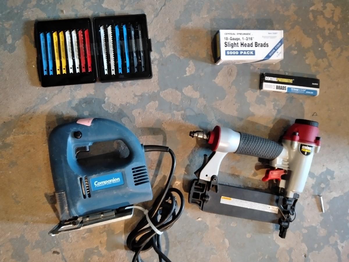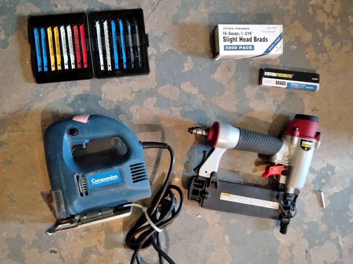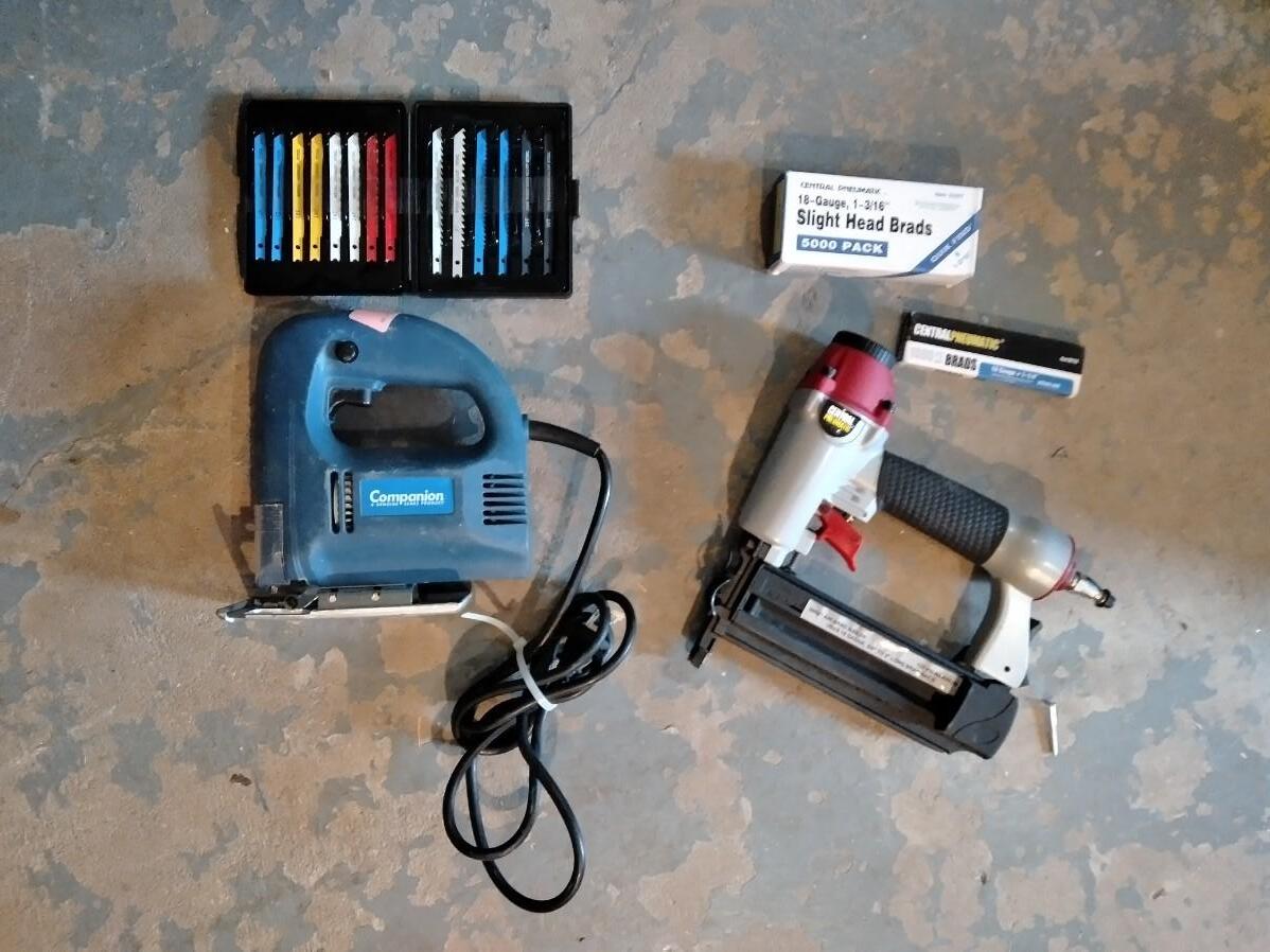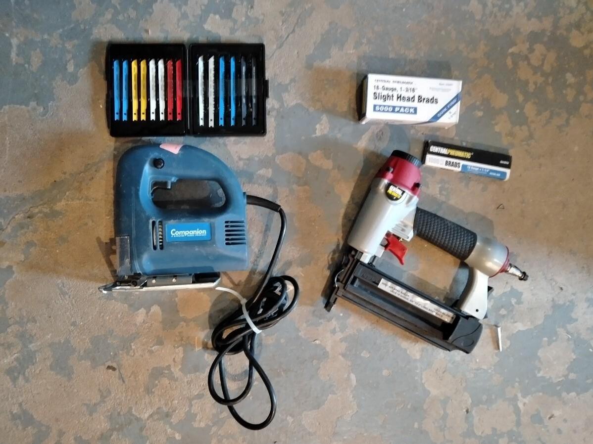SABRE SAW WITH BLADES AND PNEUMATIC BRAD NAILER WITH BRADS