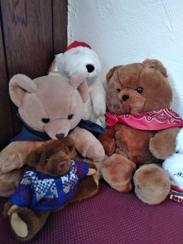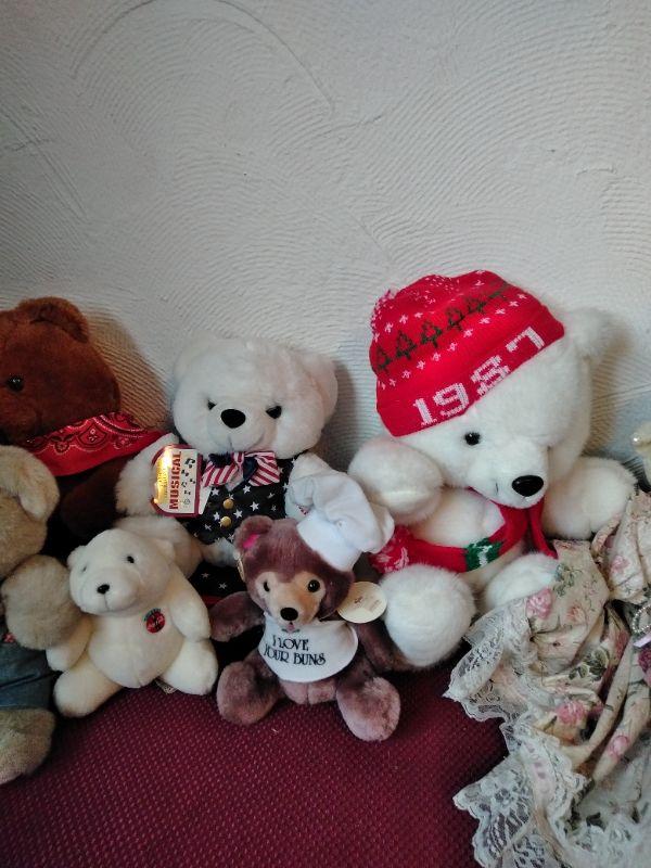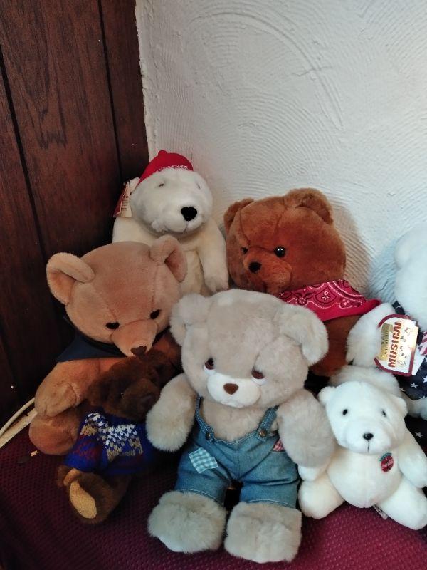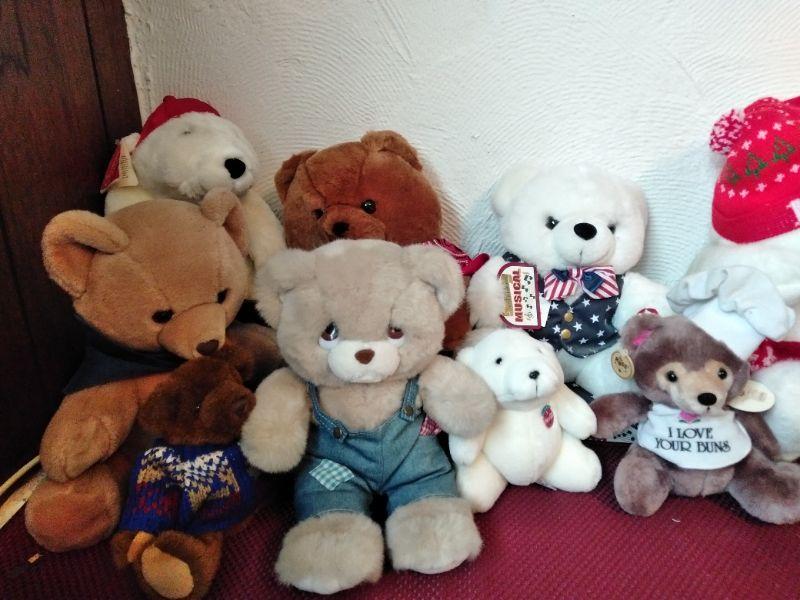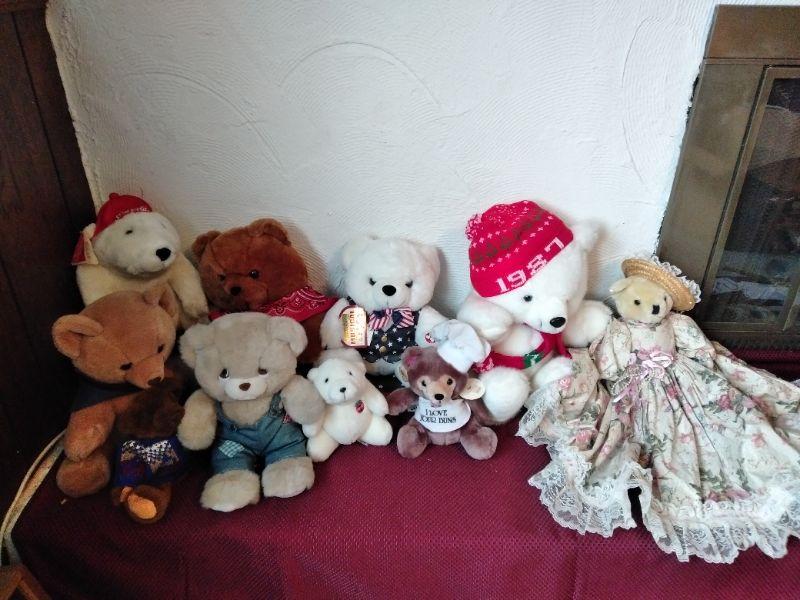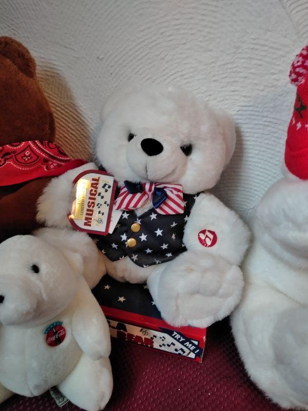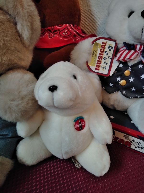 MANY DIFFERENT TEDDY BEARS, AND TWO COCA COLA POLAR BEARS.