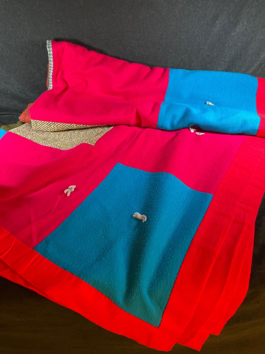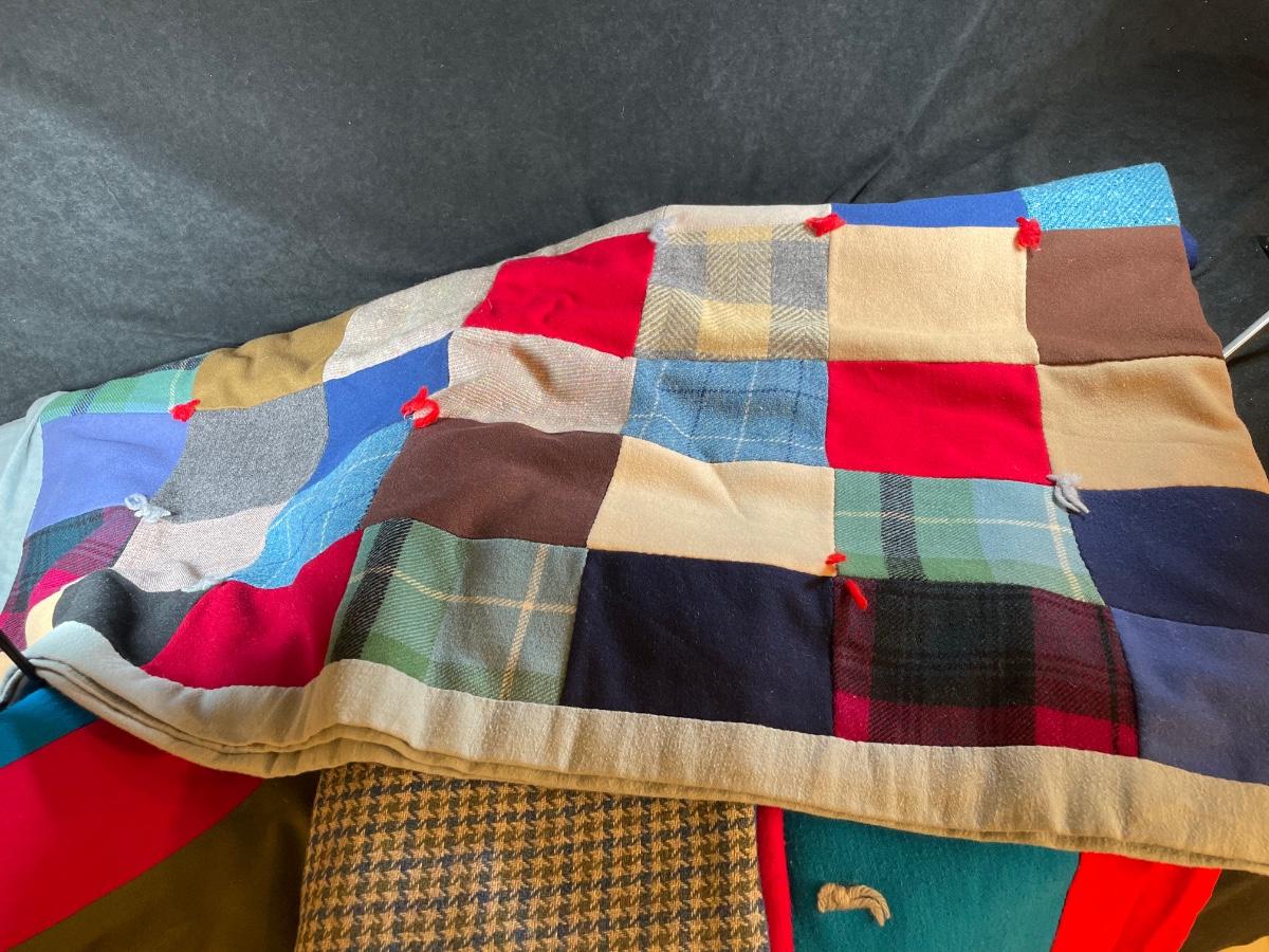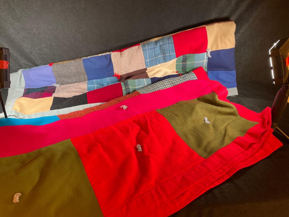 Small square patchwork quilt is mostly wool fabric and the other is a variety of fabrics