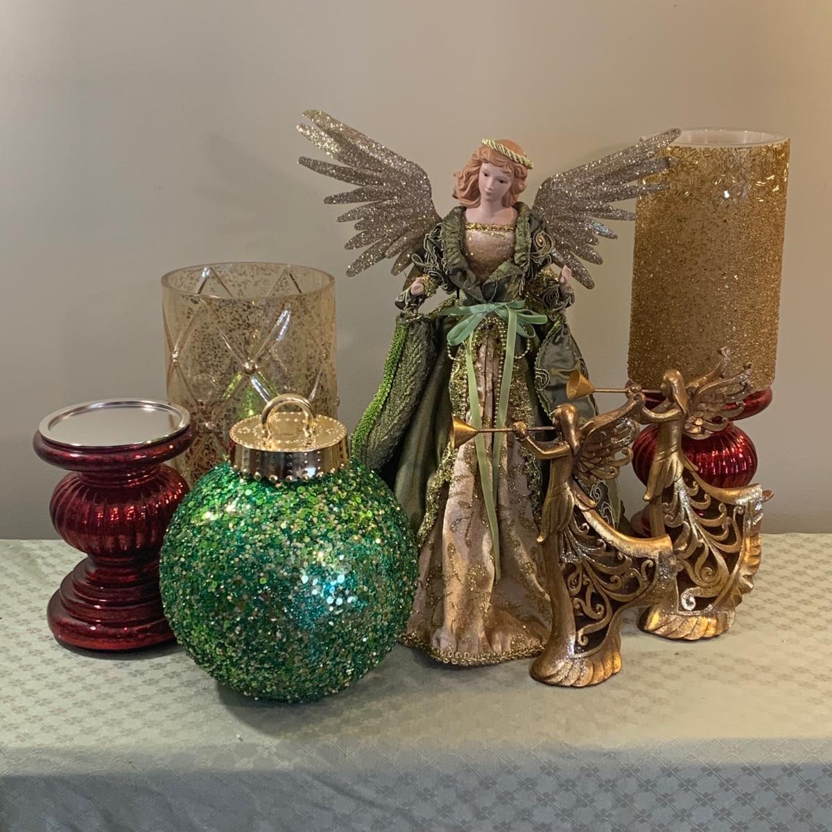 LOT 269R: Gold, Glitter & More Holiday Collection: Angle Tree Topper, Candle Holders