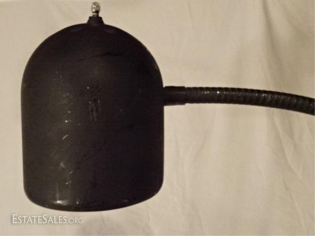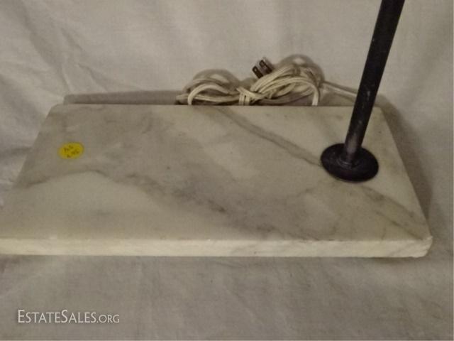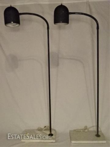 LOT 26A: PAIR MID CENTURY MODERN FLOOR LAMPS, ON MARBLE BASES, ADJUSTABLE DIRECTION, VERY GOOD VINTAGE CONDITION WITH LIGHT WEAR TO BLACK FINISH, APPROX 48"H, BASE MEASURES 14" X 6", SKU387.54