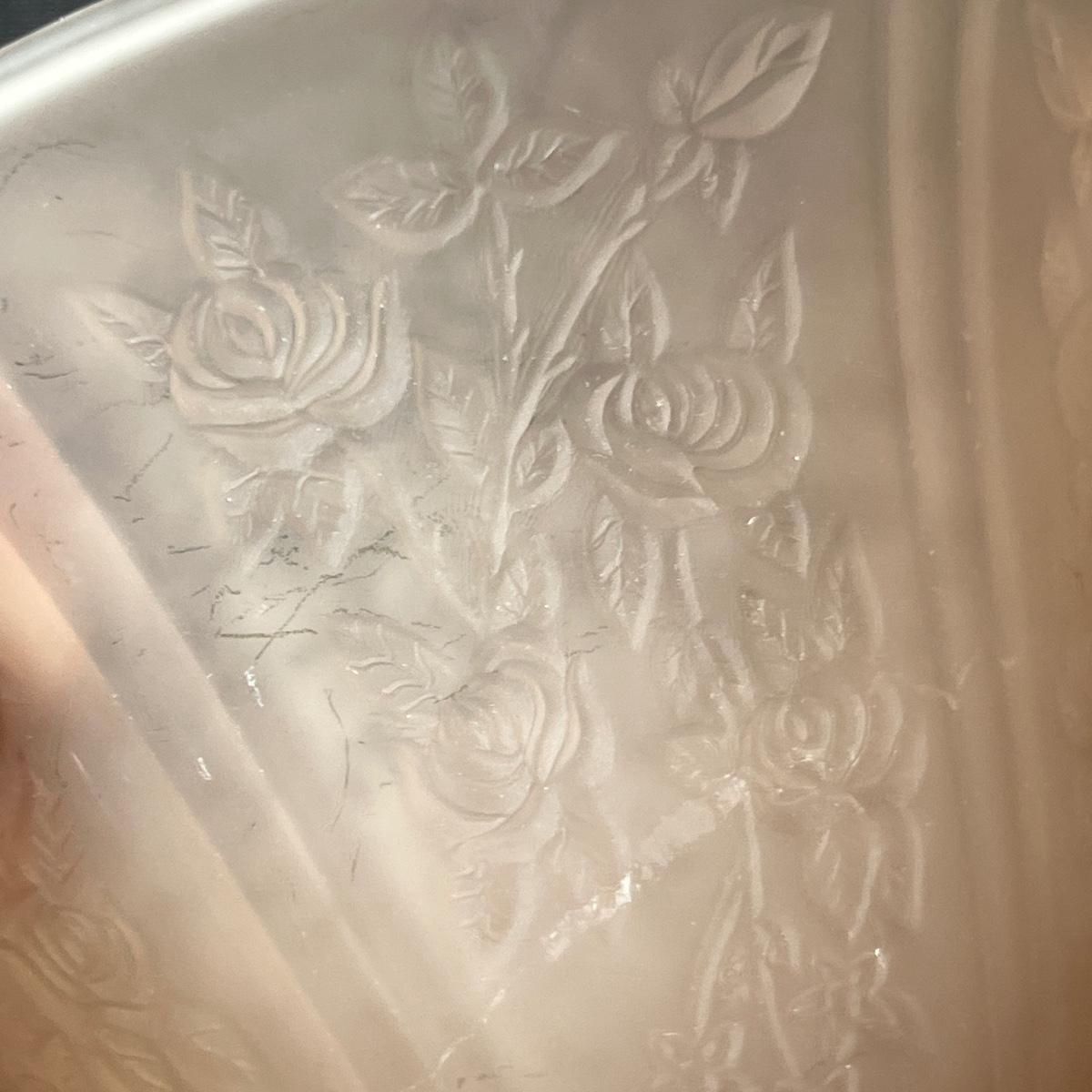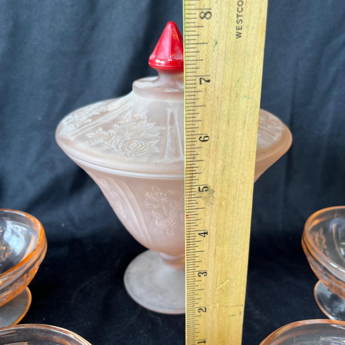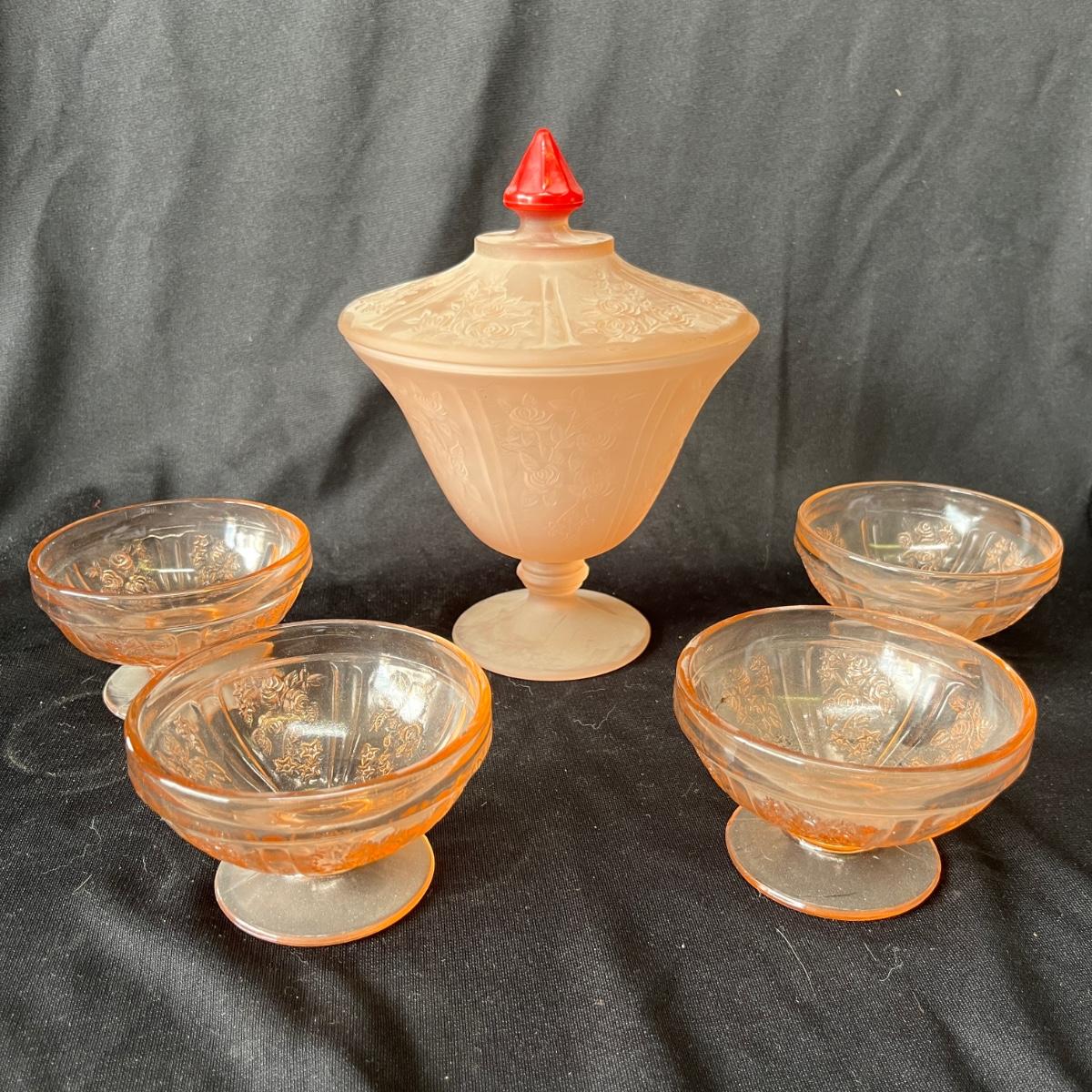This is the Sharon/ Cabbage Rose pattern. The candy dish is satinized/ frosted. HTF. No damage.