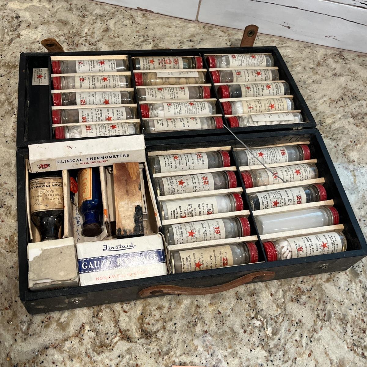 Most bottles are full. Very neat early doctor/ medical collectible.