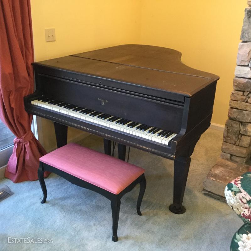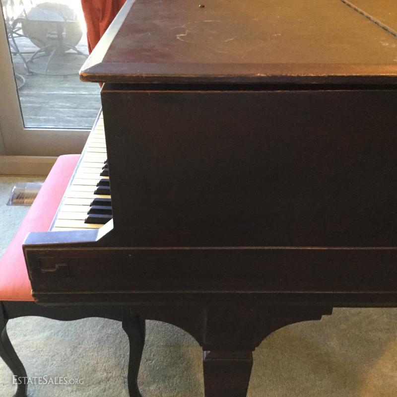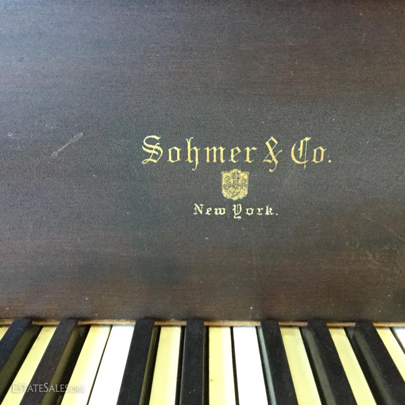 Gorgeous baby grand piano by Sohmer & Co. of New York. 53" wide at keyboard. 65" long at longest point. 40" tall. Lot includes piano bench. Serial number 40259. This items likely needs repair to enjoy to the fullest.