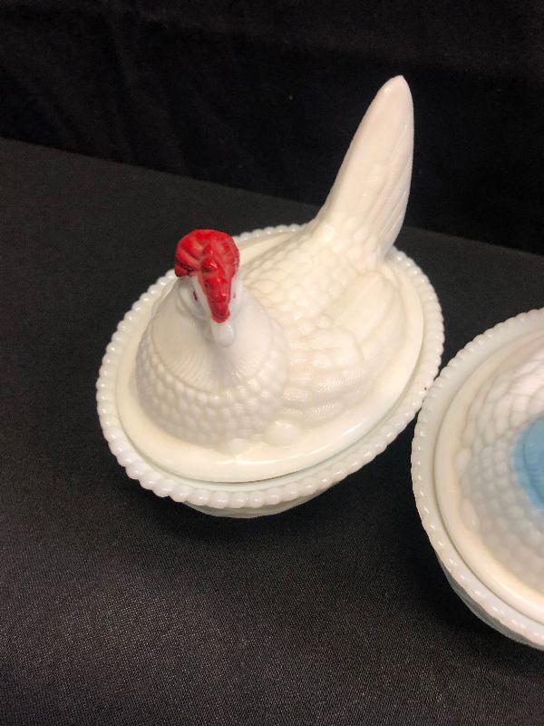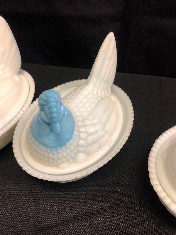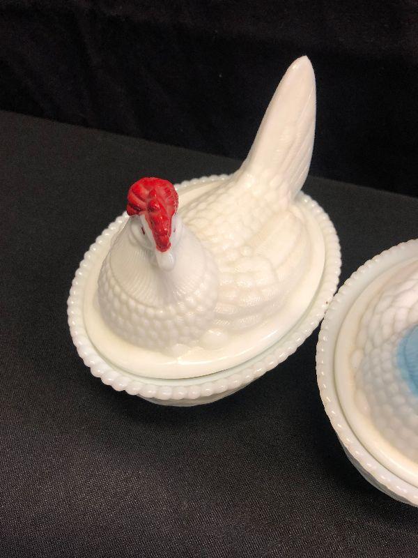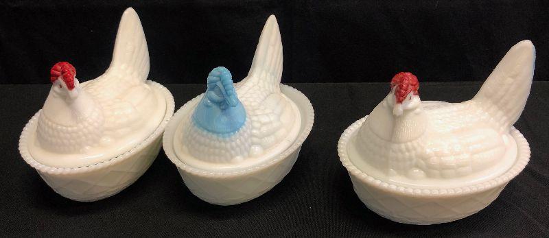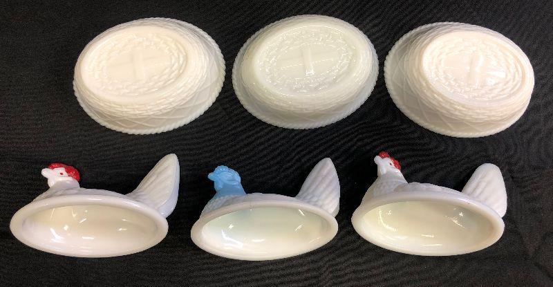 Lot 27 3- Westmorland Glass 5-1/2 inch Hen & Baskets