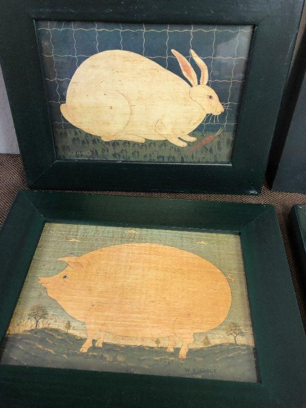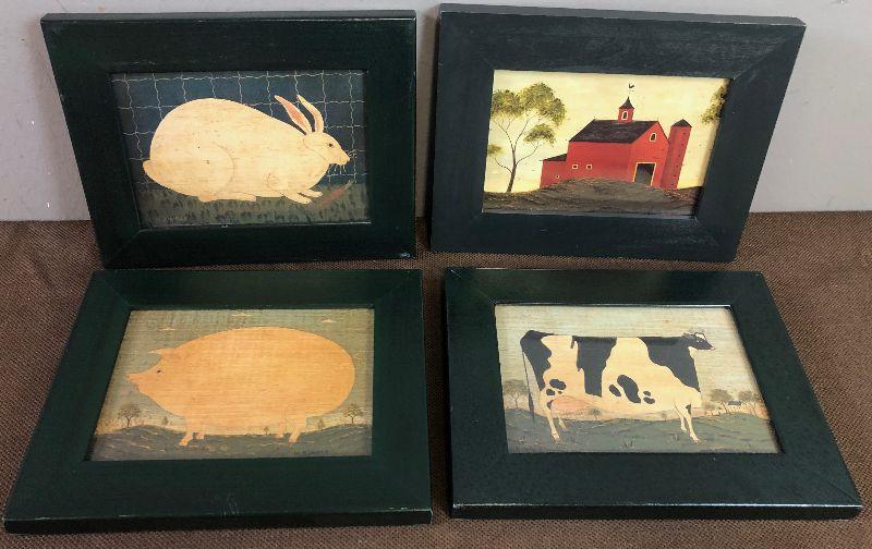 Rabbit, Pig, Cow and Barn - Wood Frame 10 x 7