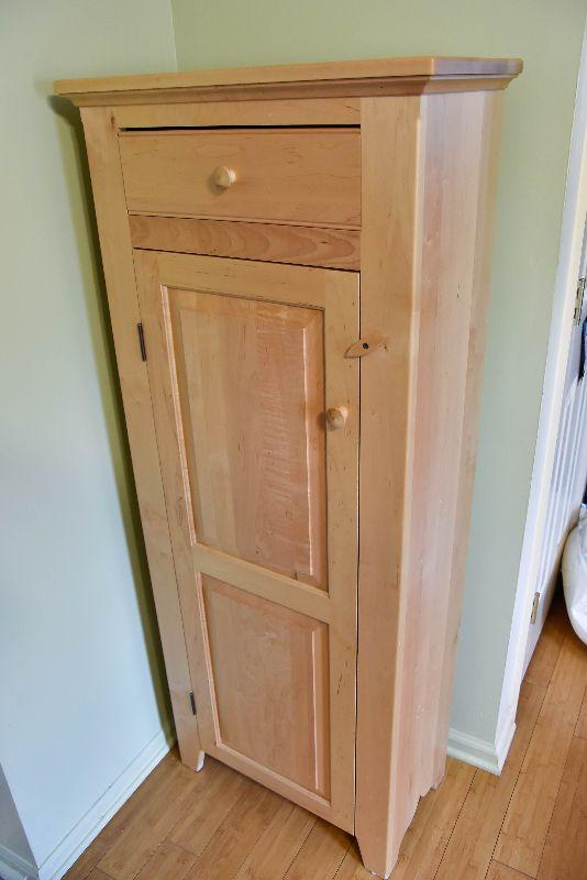 Wooden cabinet with shelves and one drawer. Bring help to move.