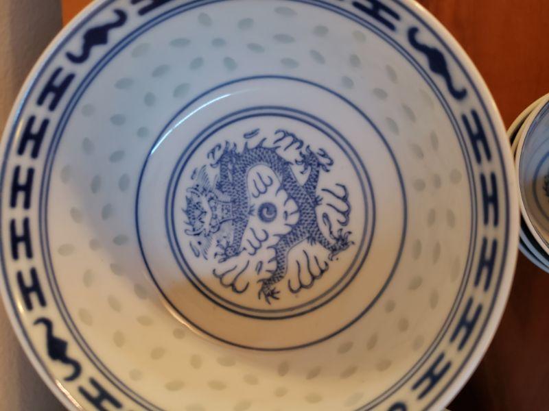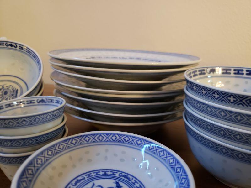 Jingdezhen China Rice Grain Blue & White - Flower & Dragon Porcelain Dish Set