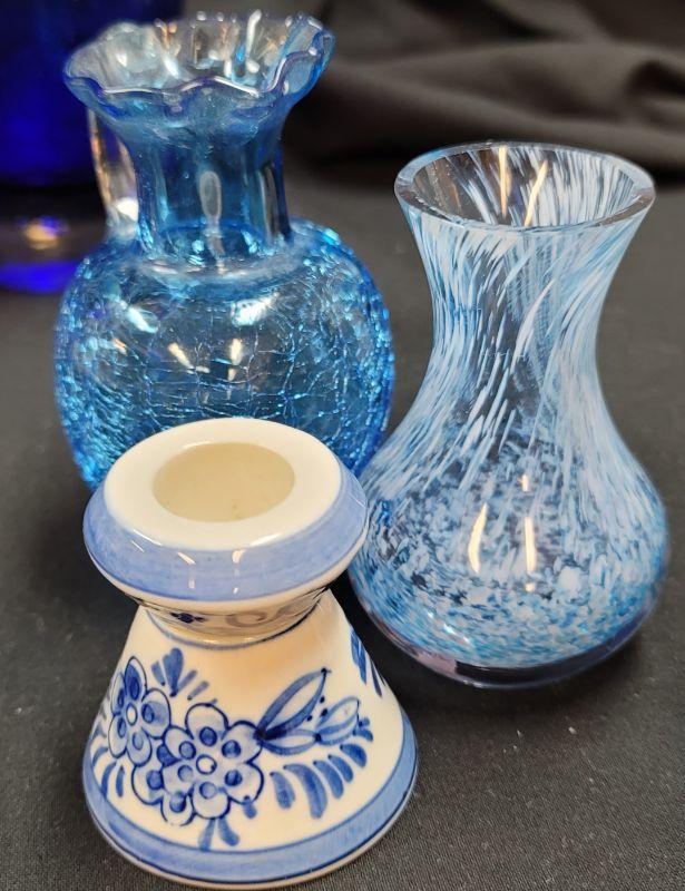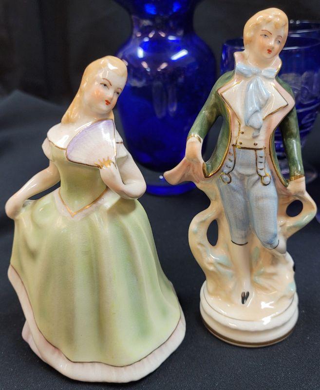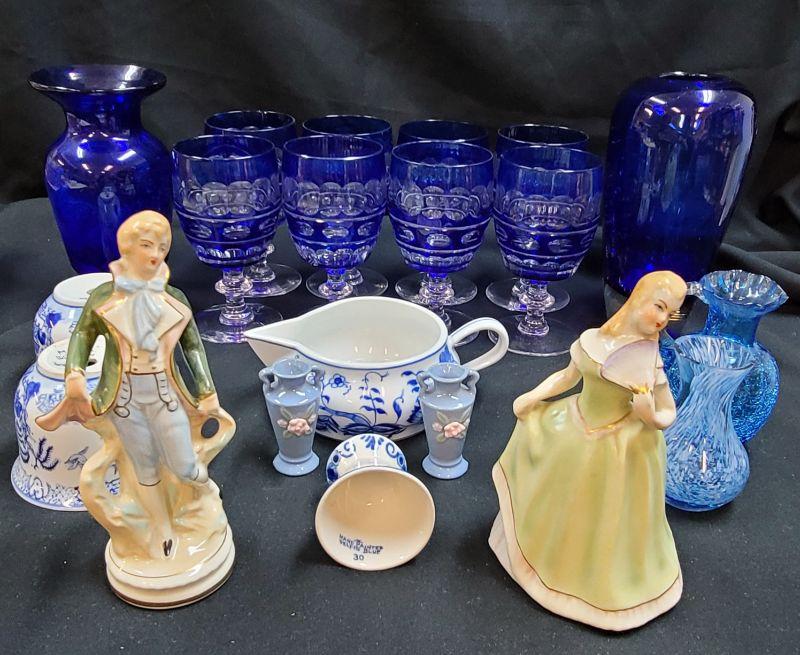 LOT 27: Cobalt Blue Art glass vases, amazing stemware, Victorian figurines, and more