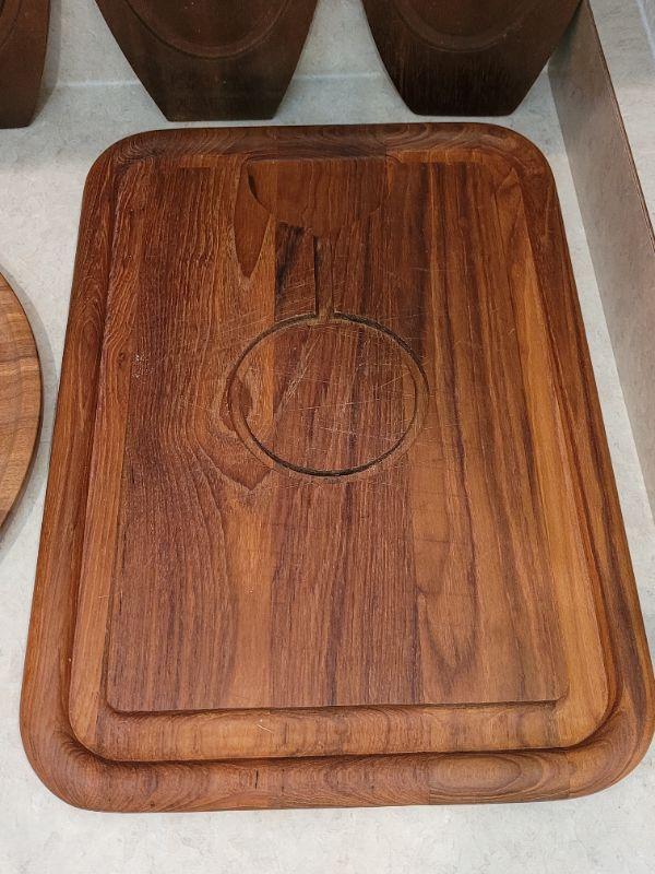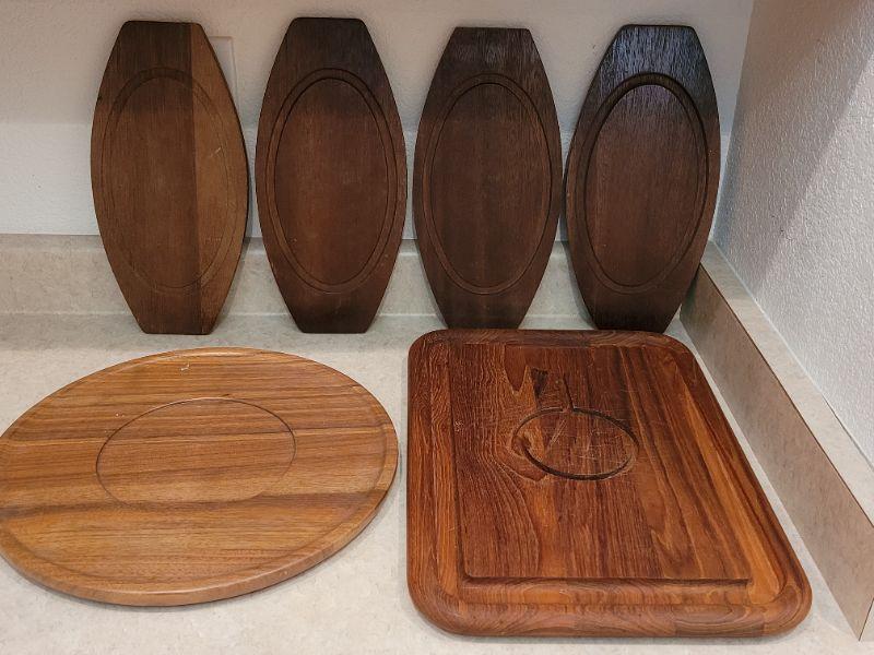 Lot 27: Mid Century Modern Teak and Other Wood Serving Charcuterie Boards & Trays