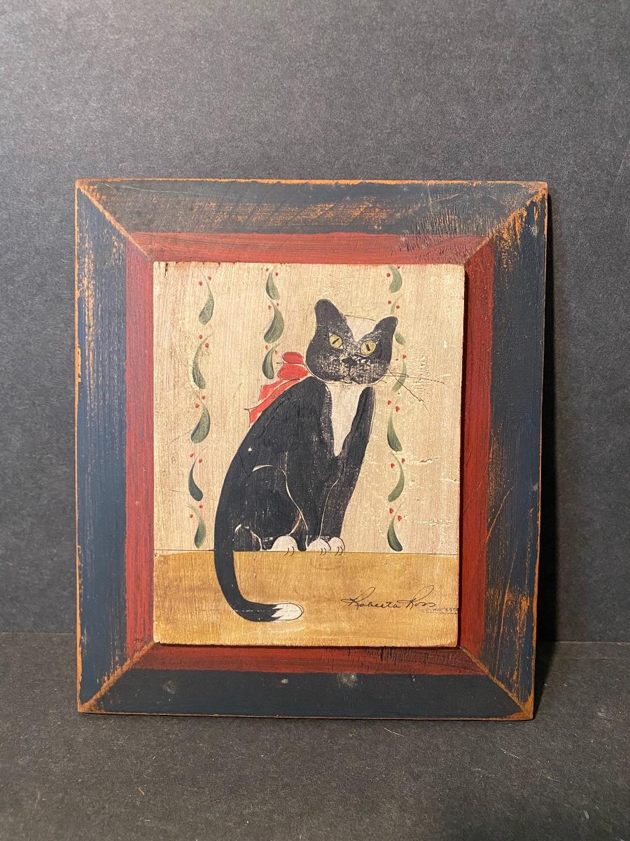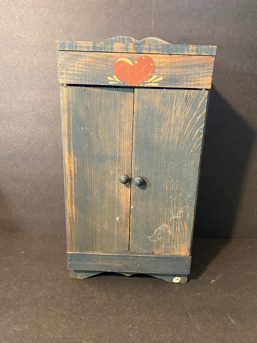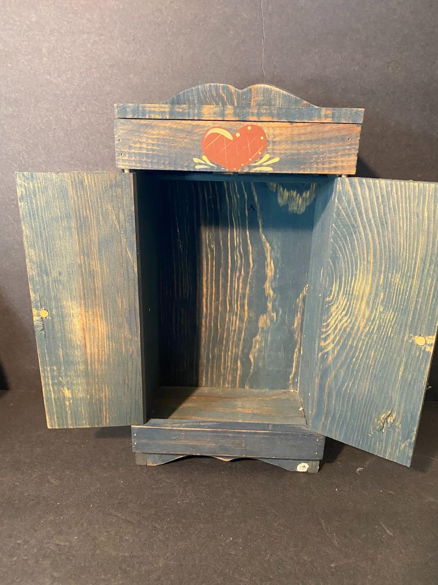 Lot 27: Primitive Decor: Cat Birdhouse, Crock, Painted Cabinet and More