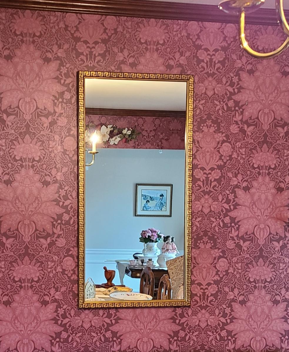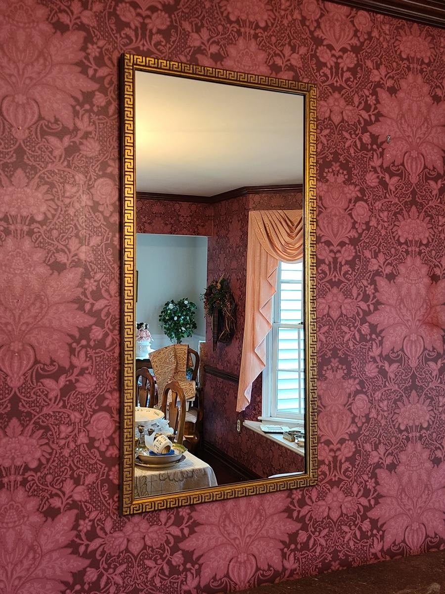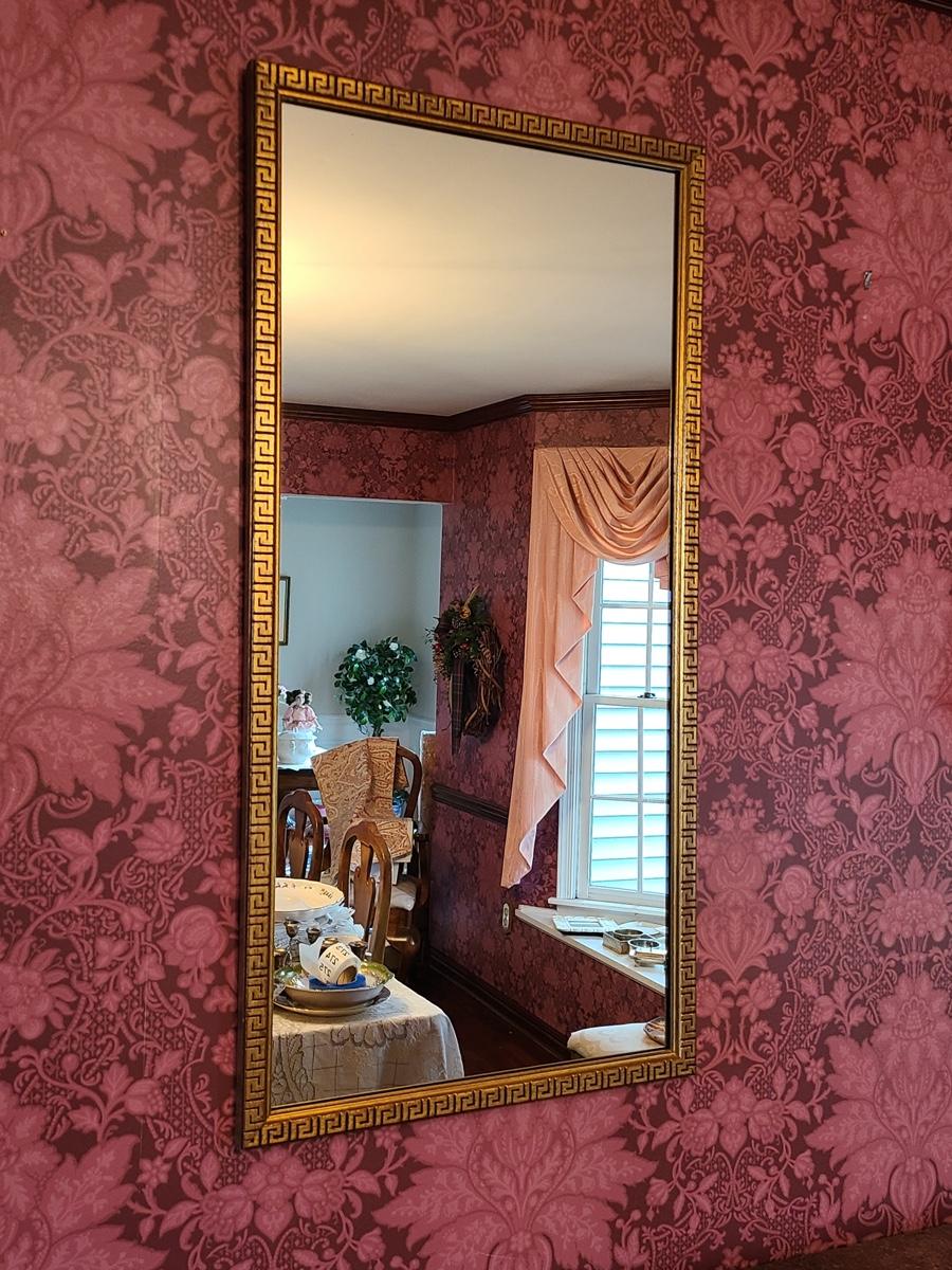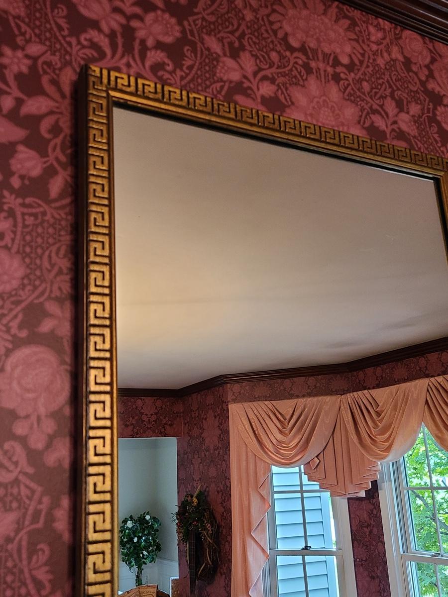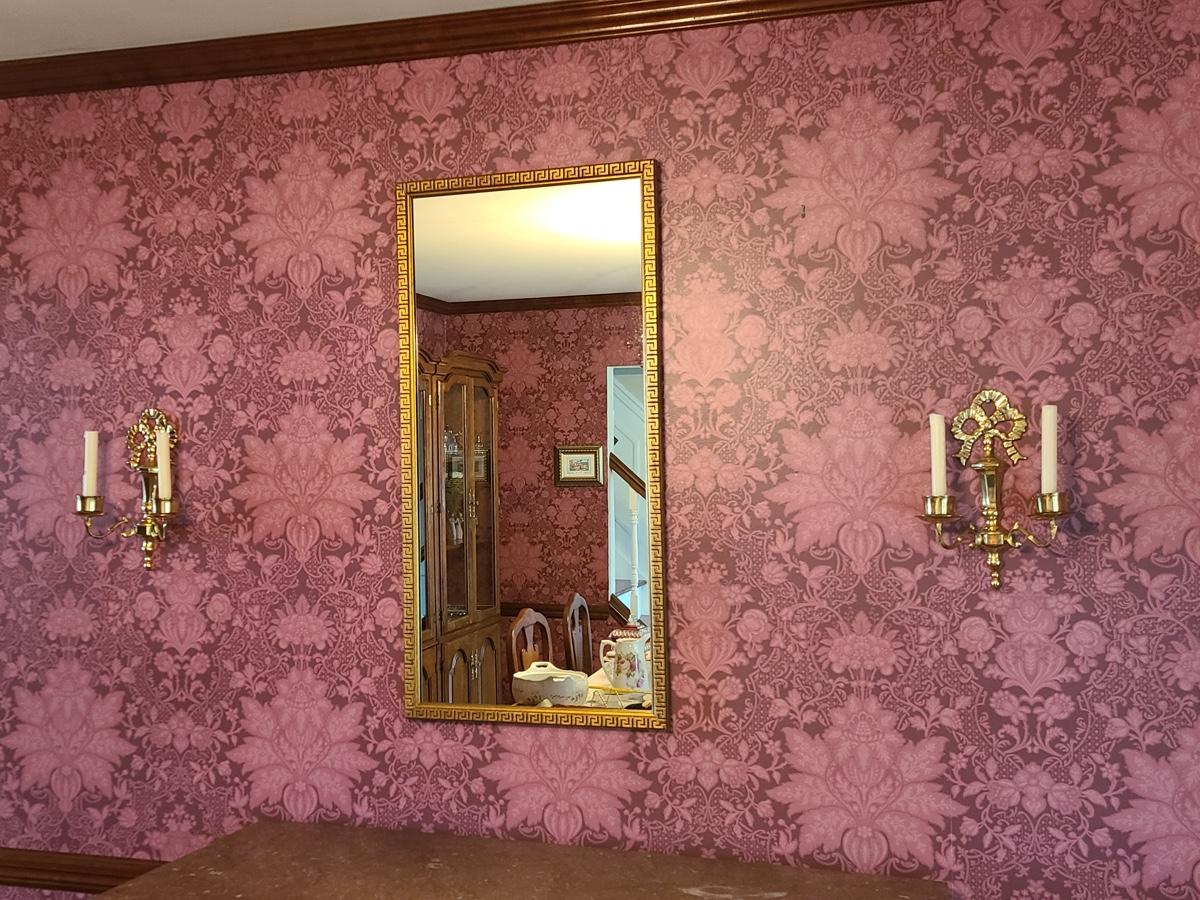 The mirror has a gorgeous wood carved frame and comes with two heavy brass sconces, but the inserts do not look to be brass, but brass colored. Pics show. Please see all pictures as they are the best representation of the items in the lot, the condition of the lot, and will show measurements if taken. If purchasing furniture you must be able to move yourself with your own help, and truck. This is located on the first floor.
