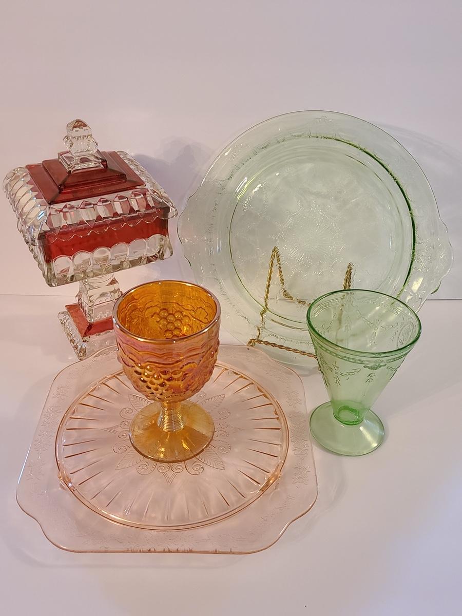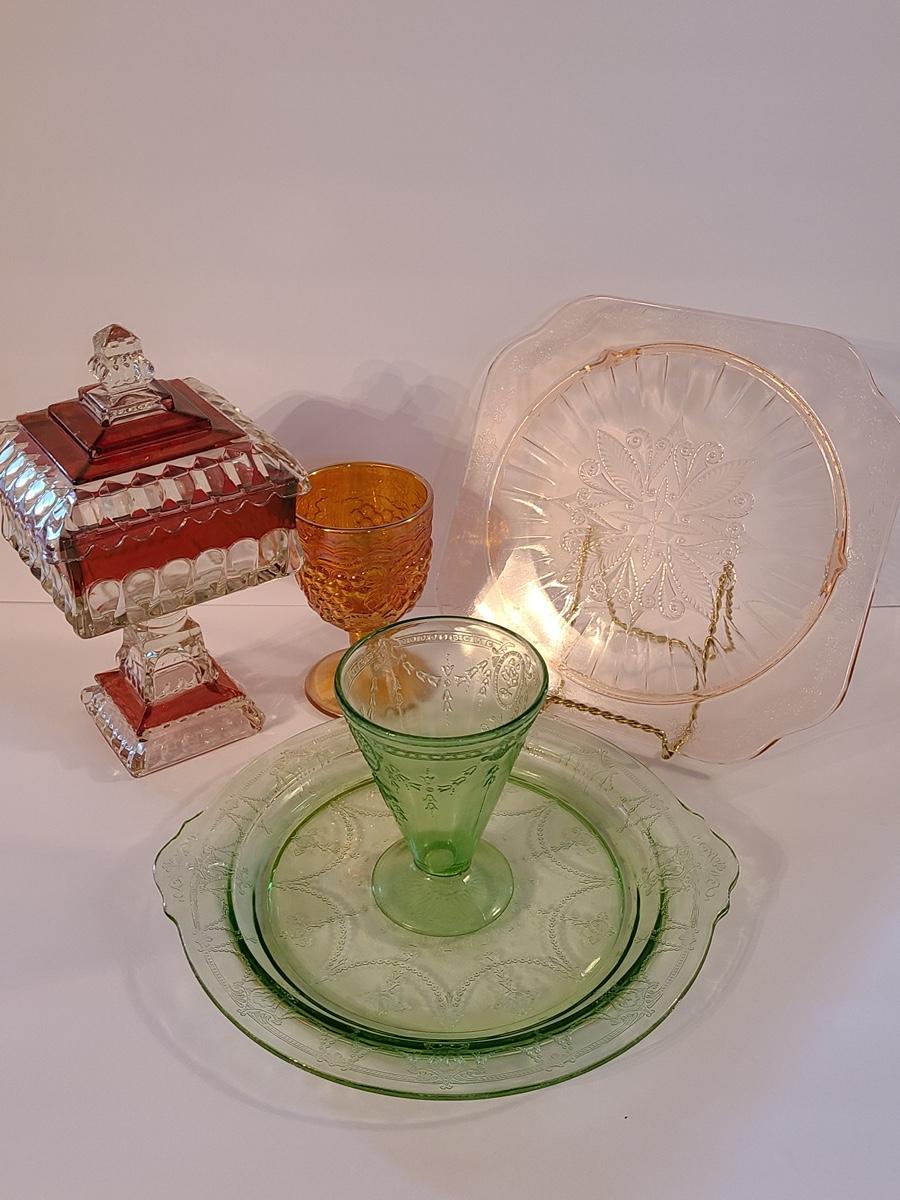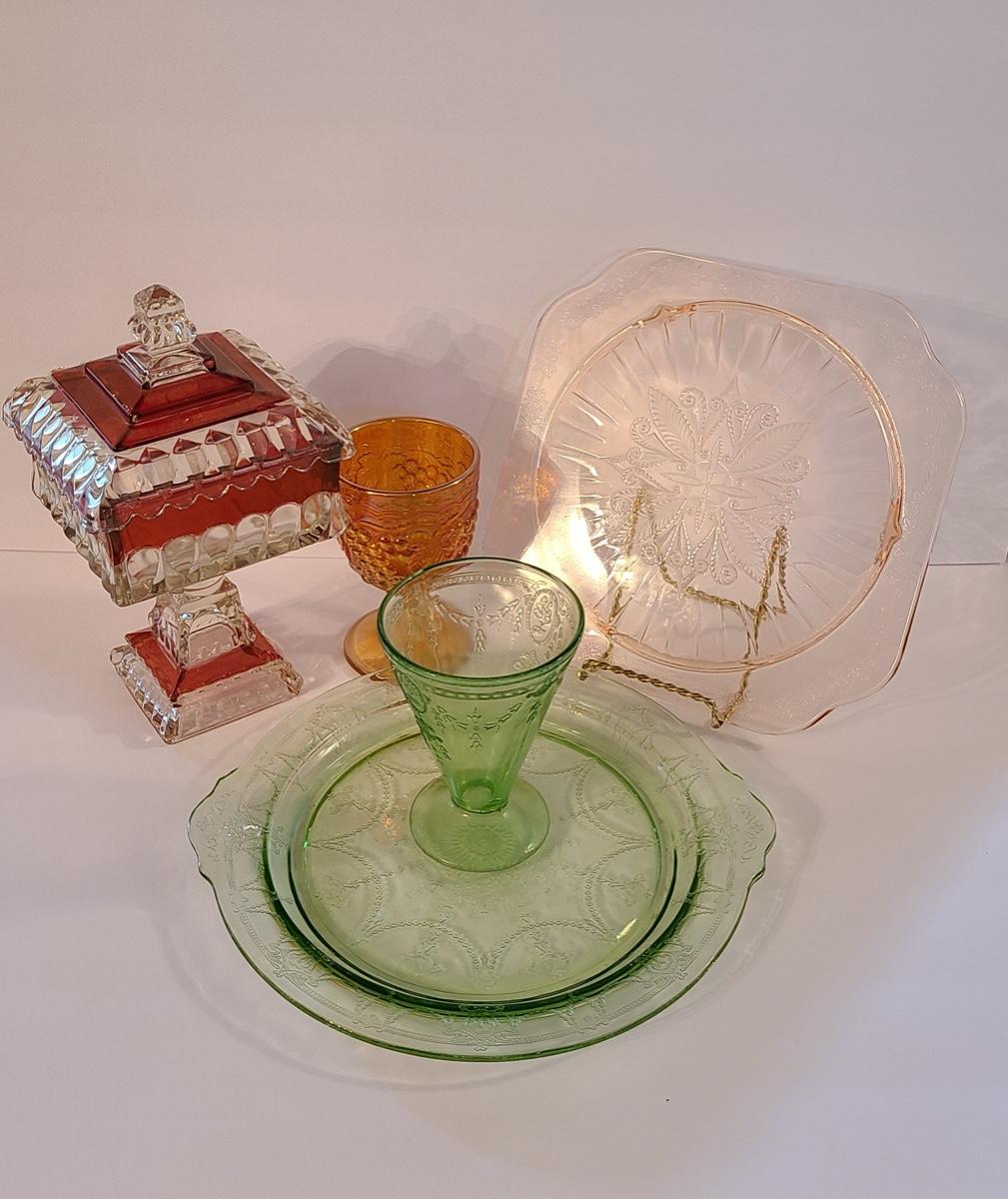 Lovely lot of depression glass, a footed covered candy and more. Please see all pictures as they are the best representation of the items in the lot, the condition of the lot, and will show measurements if taken. If purchasing furniture you must be able to move yourself with your own help, and truck.