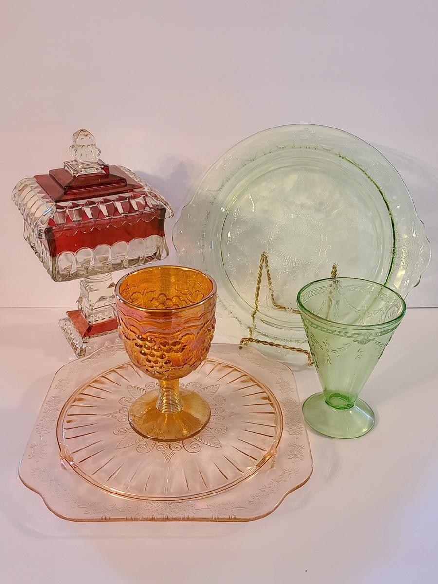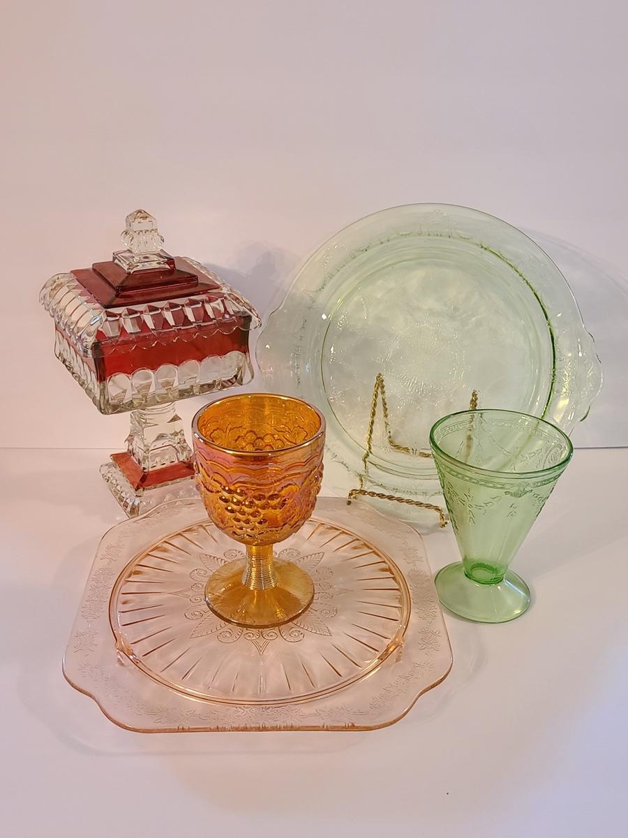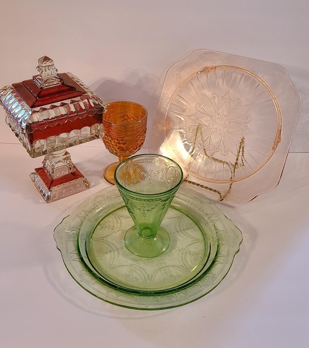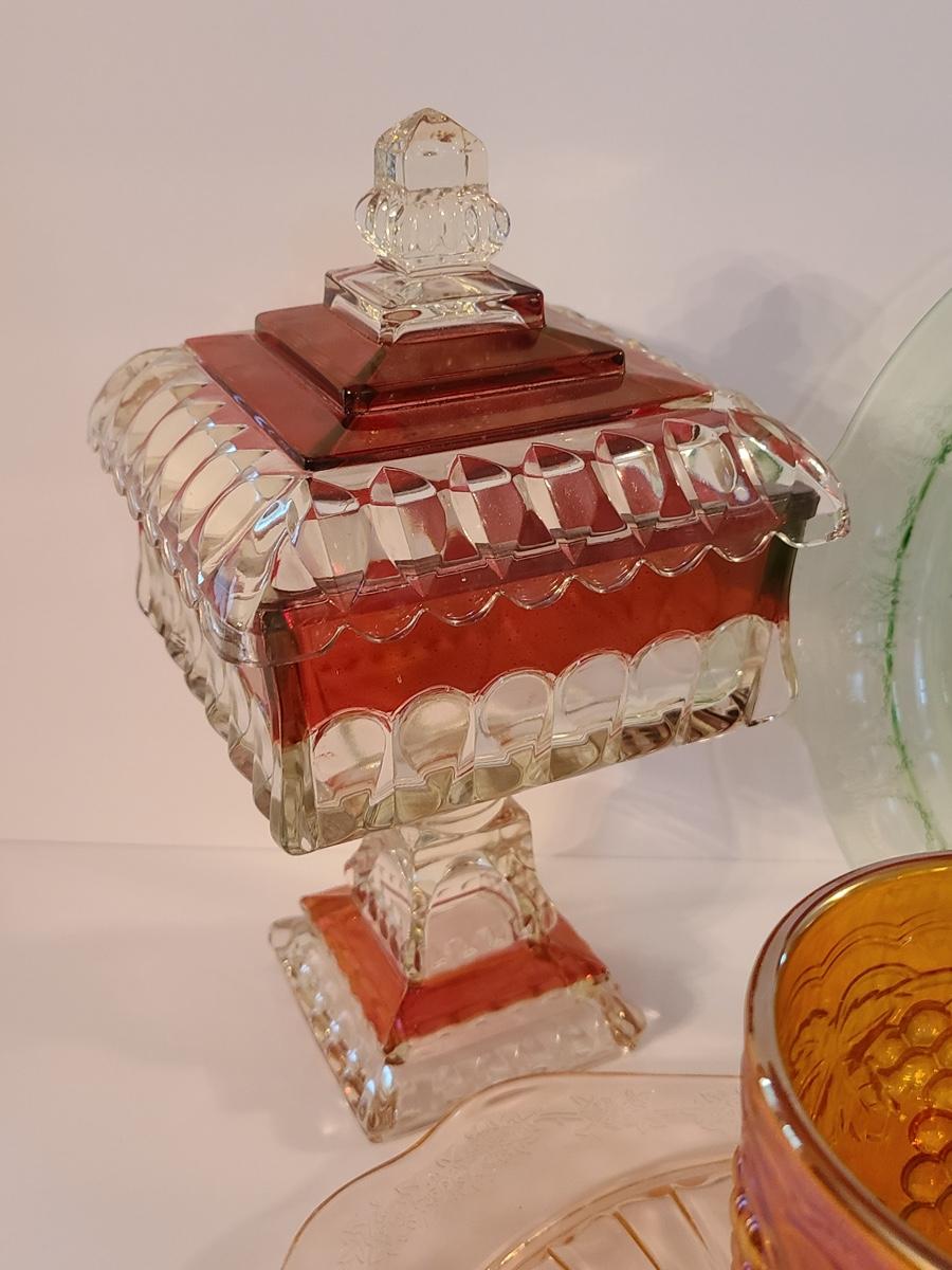 Lovely lot of depression glass, a footed covered candy and more. Please see all pictures as they are the best representation of the items in the lot, the condition of the lot, and will show measurements if taken. If purchasing furniture you must be able to move yourself with your own help, and truck.