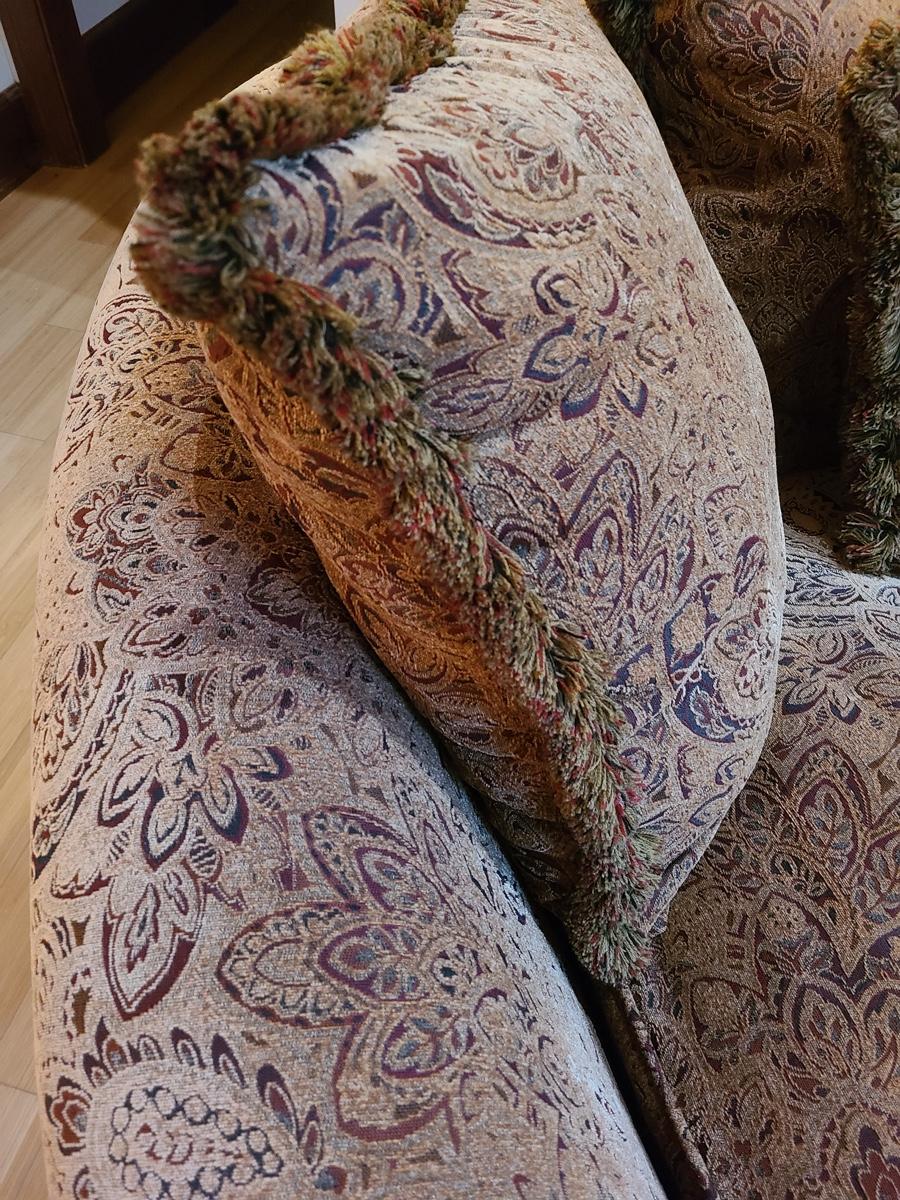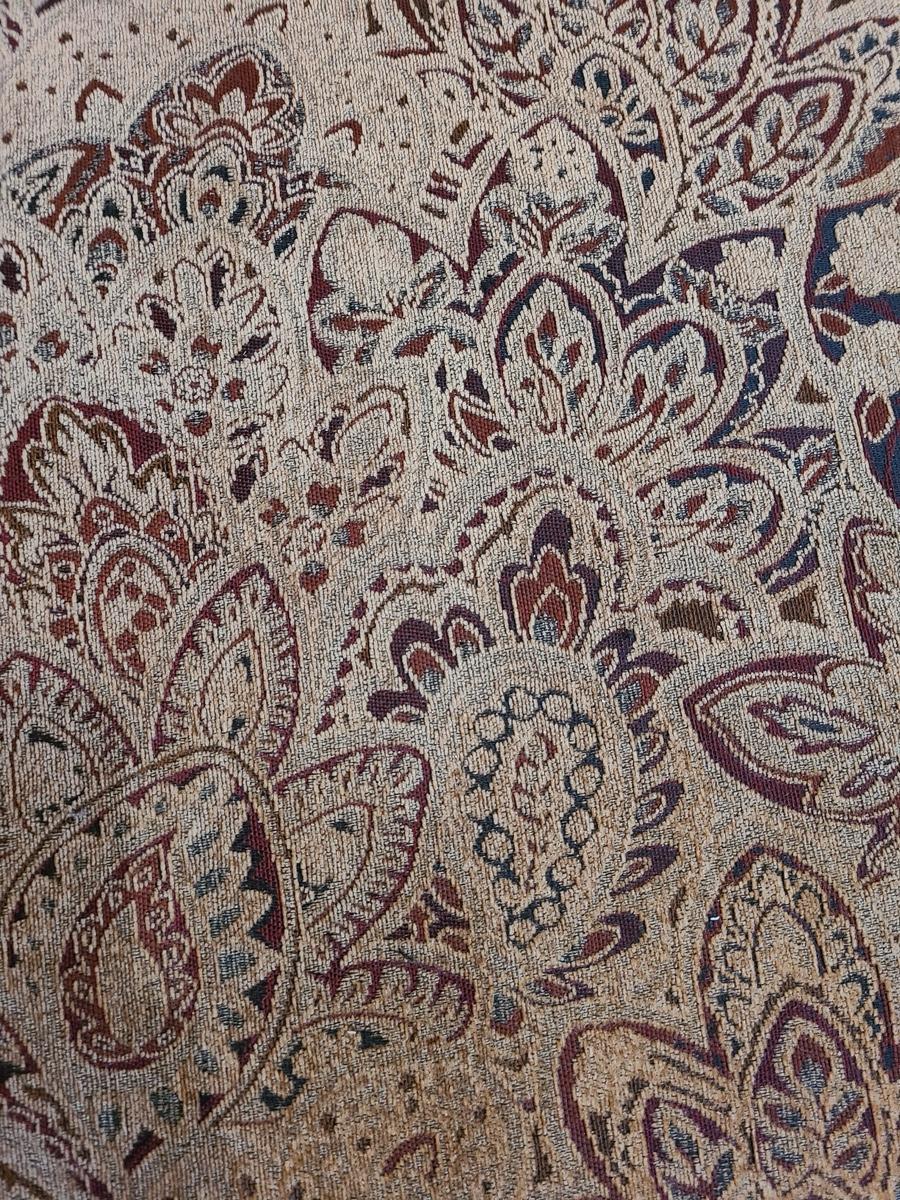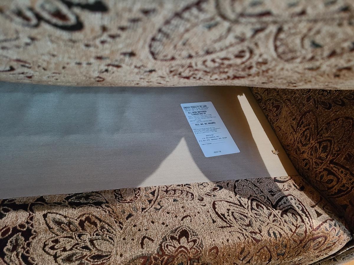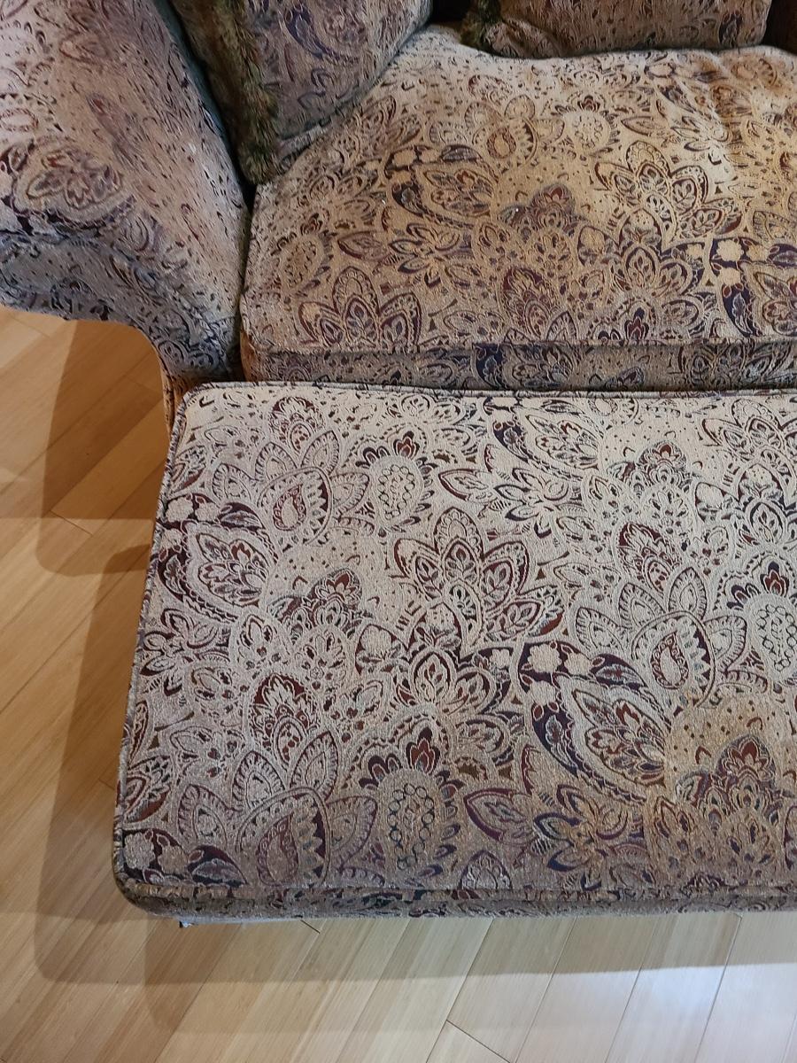62x48x32 oversized comfy chair and matching ottoman. Browns with hints of red. The ottoman does show some wear as it is faded in spots due to home having large windows with direct sunlight. The beauty of the pattern is that the discoloration actually looks like shadows on the fabric in the lighting. Super comfortable set! Please see all pictures as they are the best representation of the items. The pictures show condition, measurements if taken, and what is included in the lot. Due to the large amount that we photograph and the time frame, we are not always able to take measurements. All items unless noted, are pre-owned and have been used. If you purchased furniture, you must bring help. We do not allow one person to carry large furniture out on their own. Bring help, tools and a truck for the safety of our clients homes, and your personal safety. Company policy. Thank you.