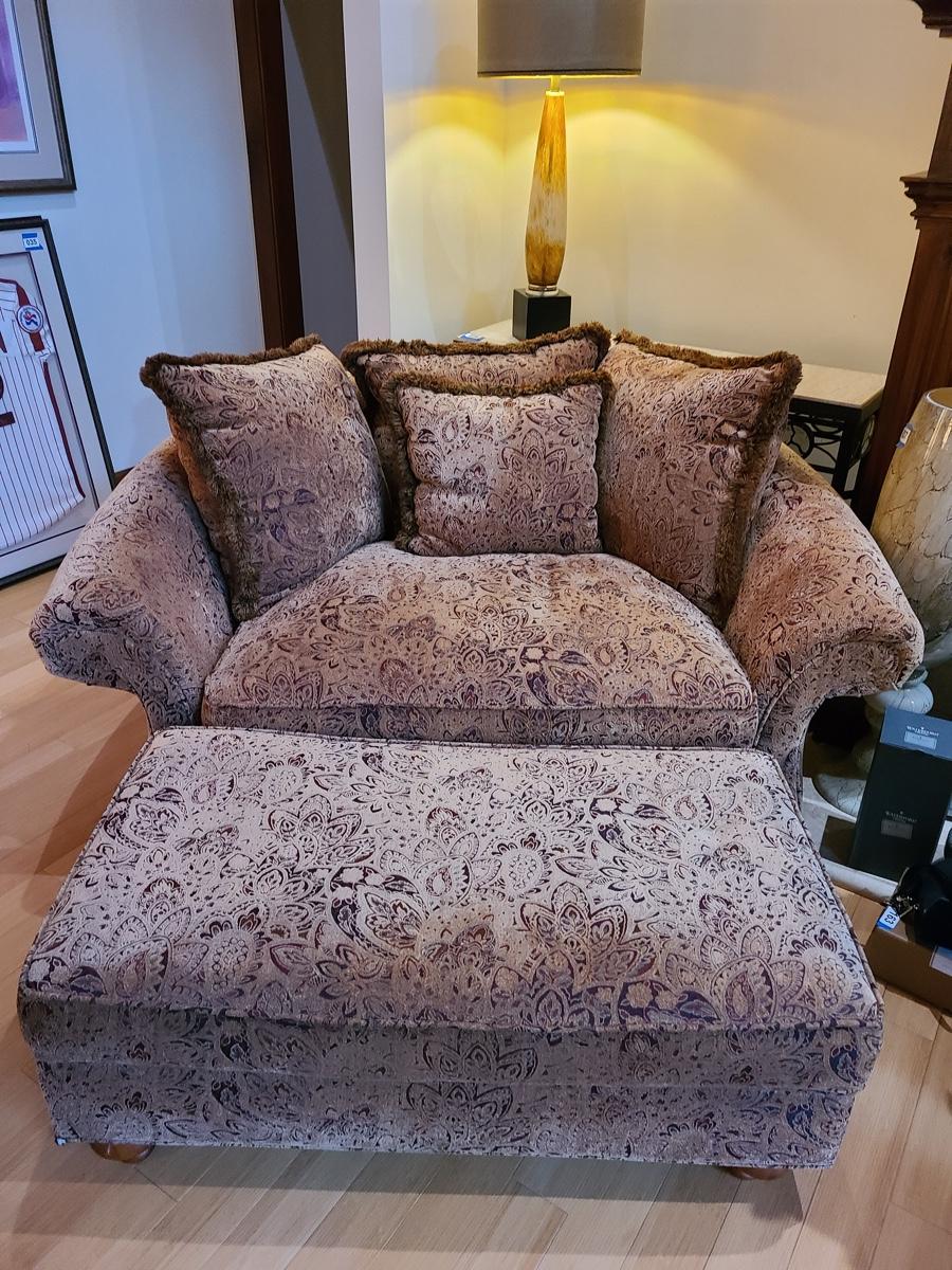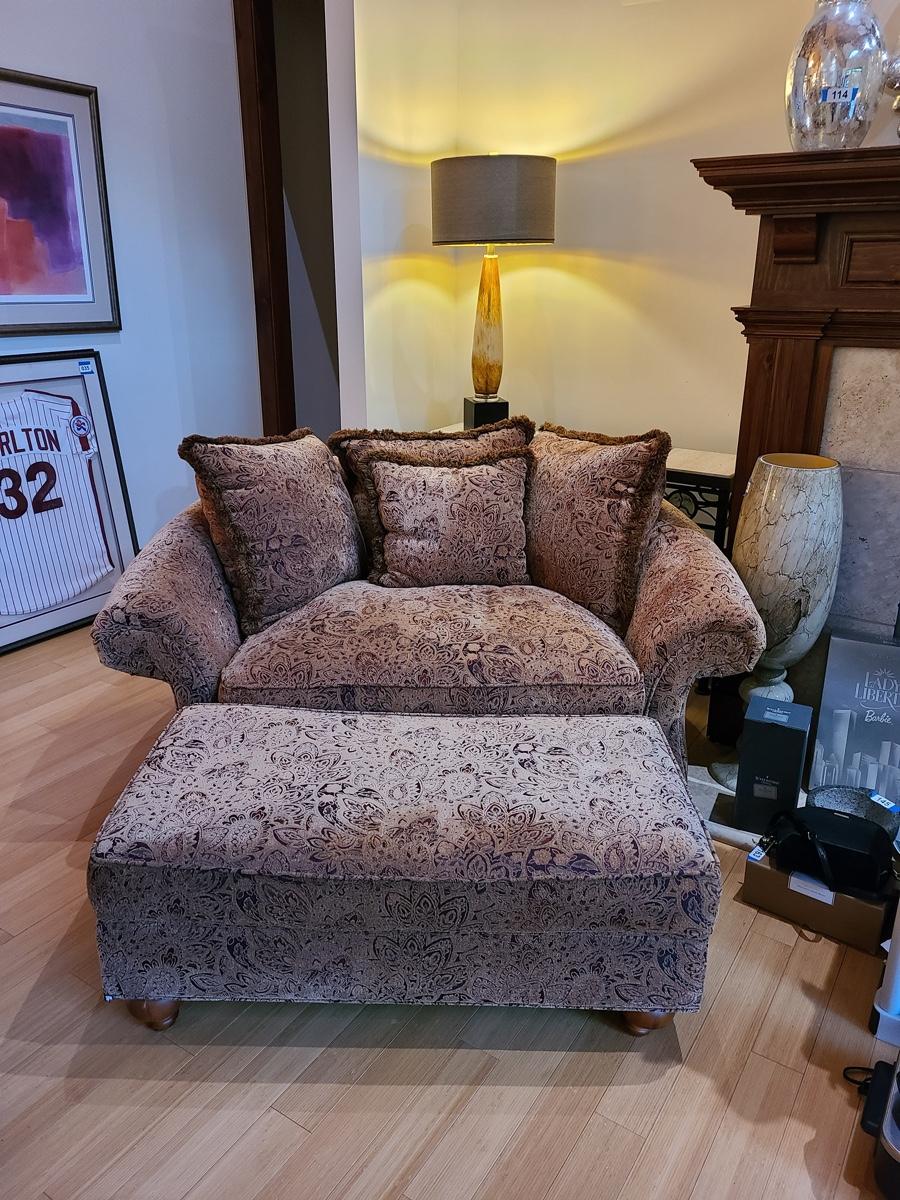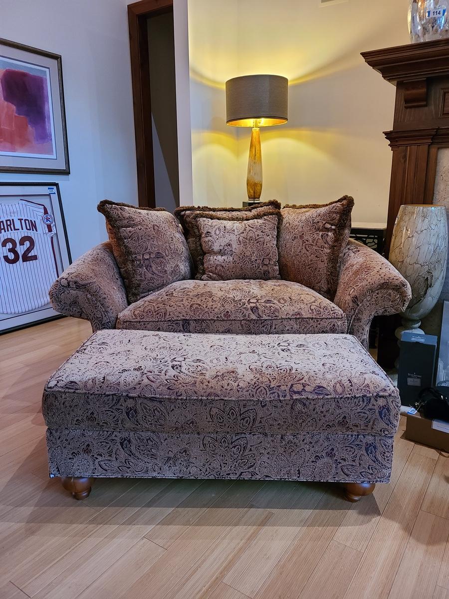 Lot 27: Oversized Accent Chair with Matching Ottoman