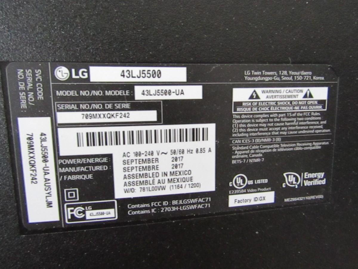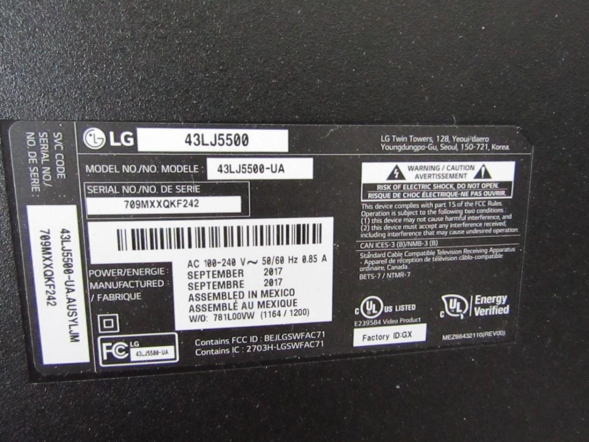 LG 43" TELEVISION WITH REMOTE CONTROL MODEL 43LJ5500-UA