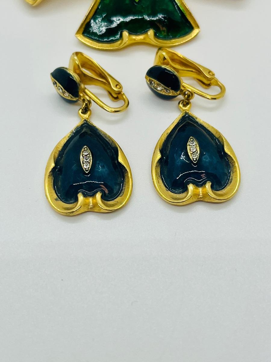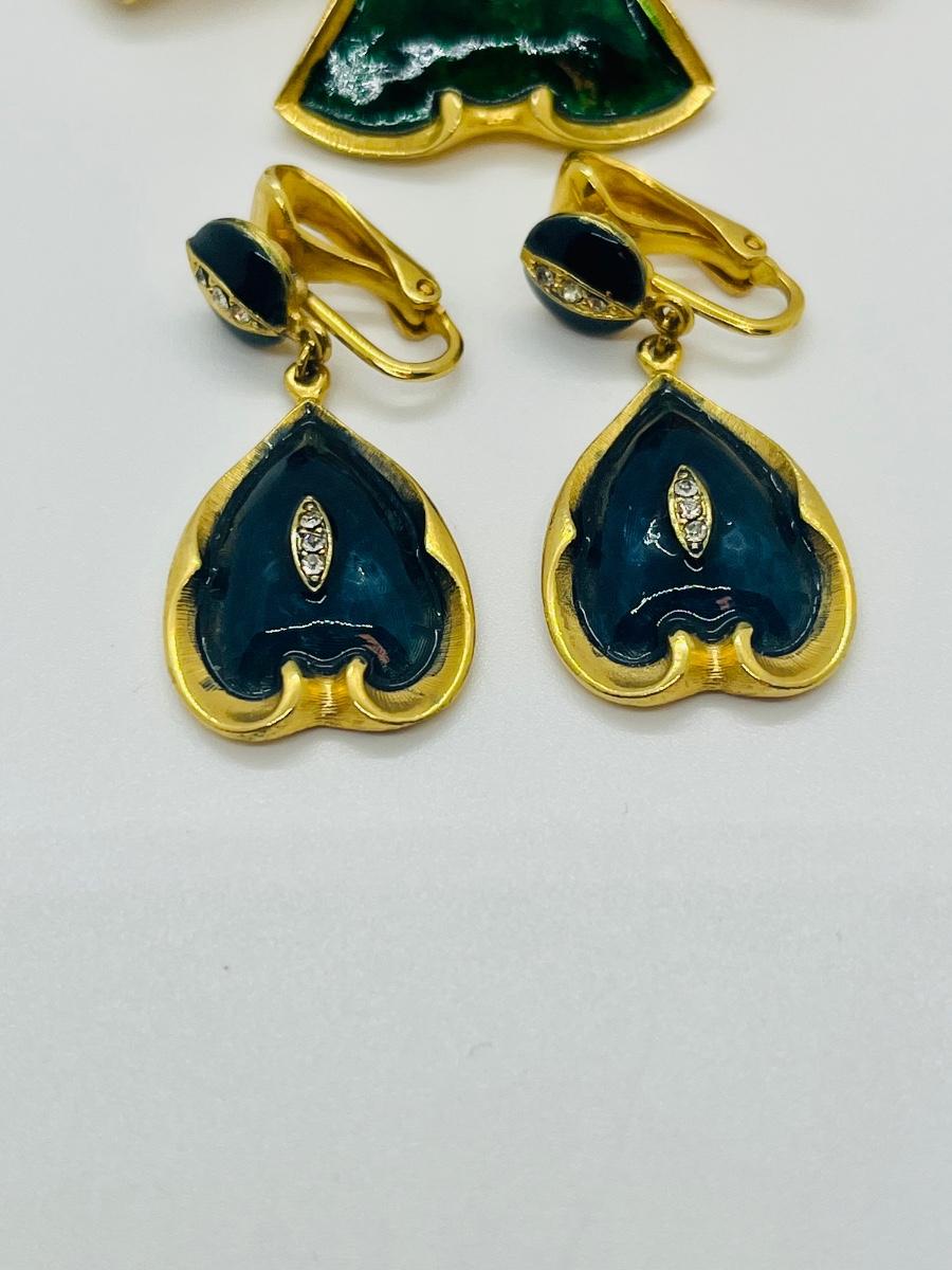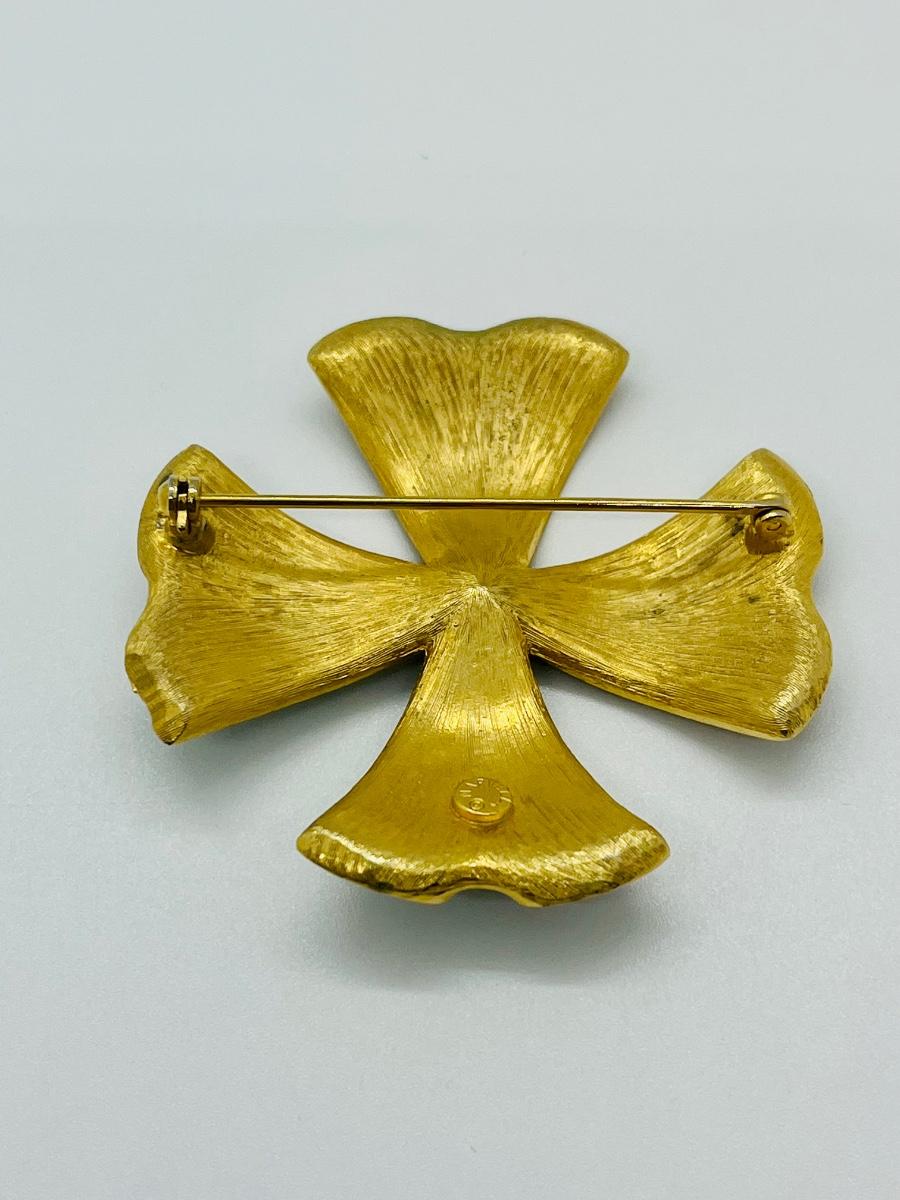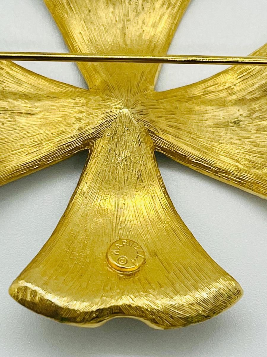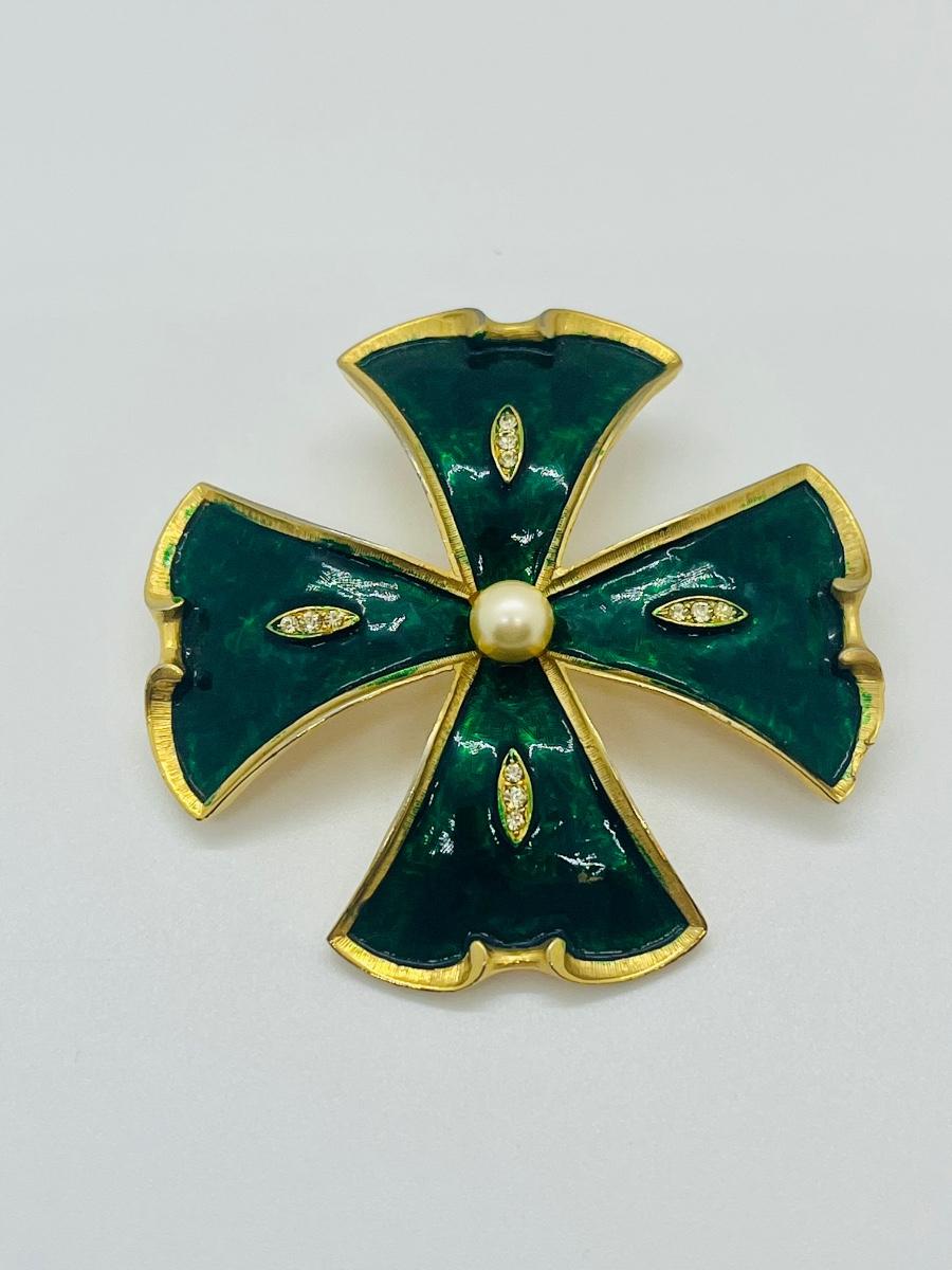 Lot 27: Vintage Marvella Green Enamel Maltese Cross & Rhinestone Brooch w/ Clip-on Earrings