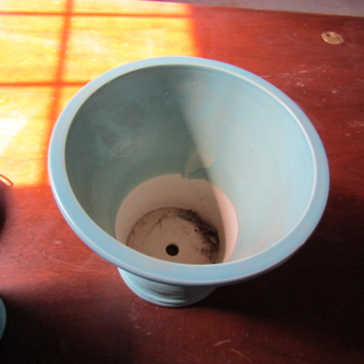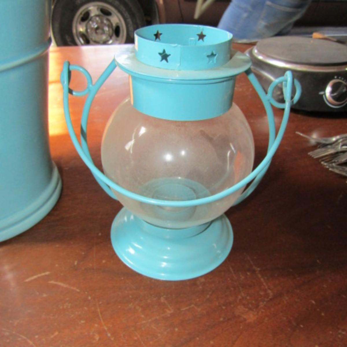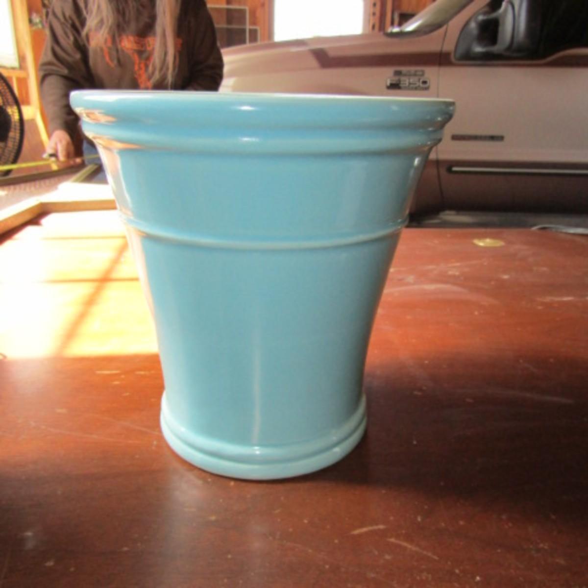 CERAMIC FLOWER POTS THE LARGEST IS 9" TALL, CANDLE LANTERN AND BOWL WITH HANDLE