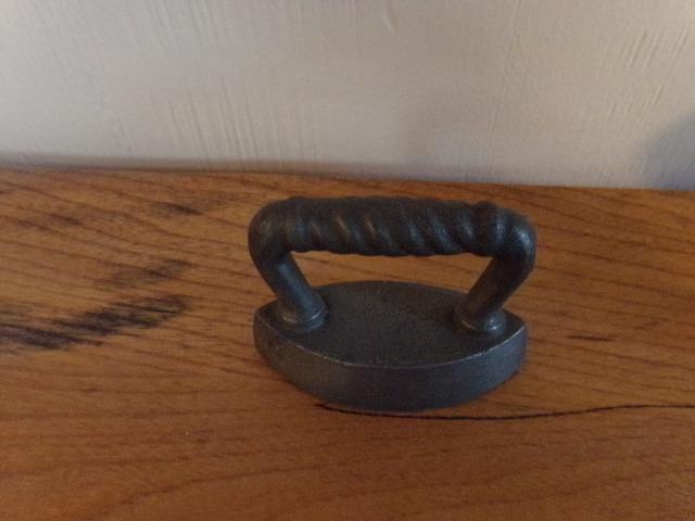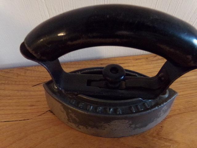 ANTIQUE HOWELL CO. GENEVA ILL IRON WITH HANDLE. SMALL VINTAGE CAST IRON.