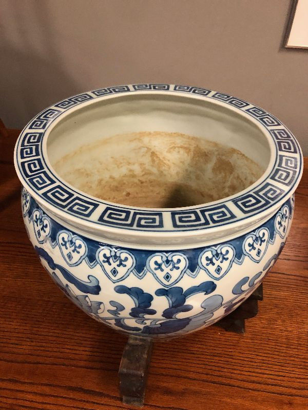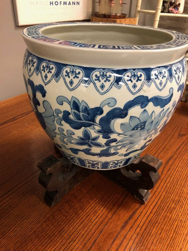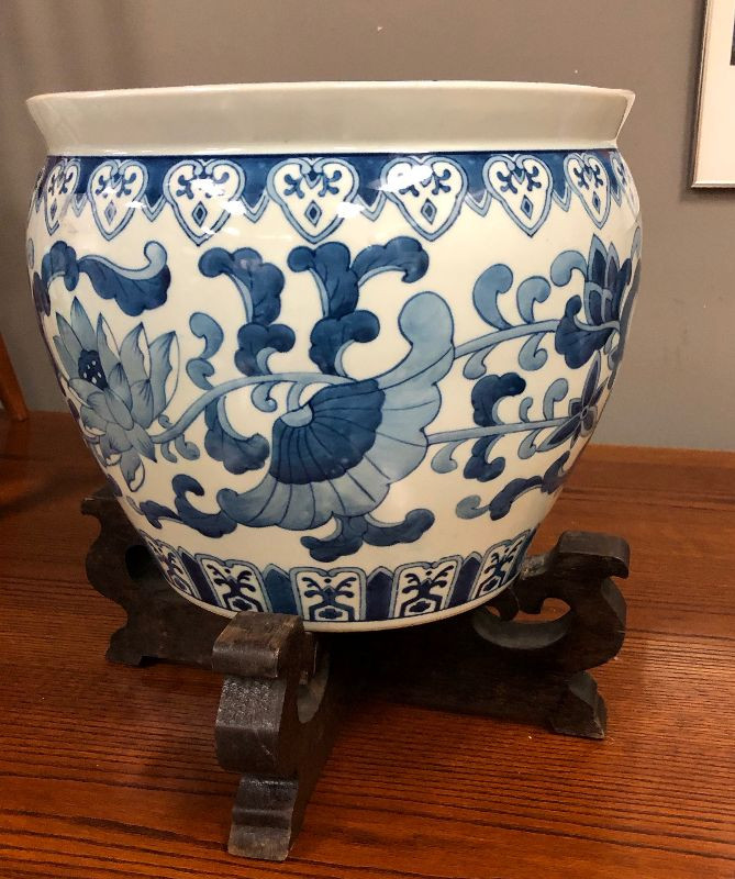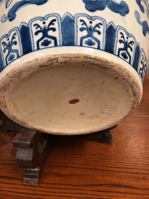 Lot 27 Asian Blue Vase with wood stand