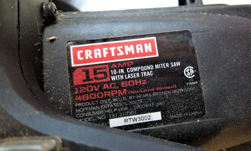 This Craftsman 18" Compound Mitre saw is in good working condition. Model #137212361. 15 AMPS - Laser Track
