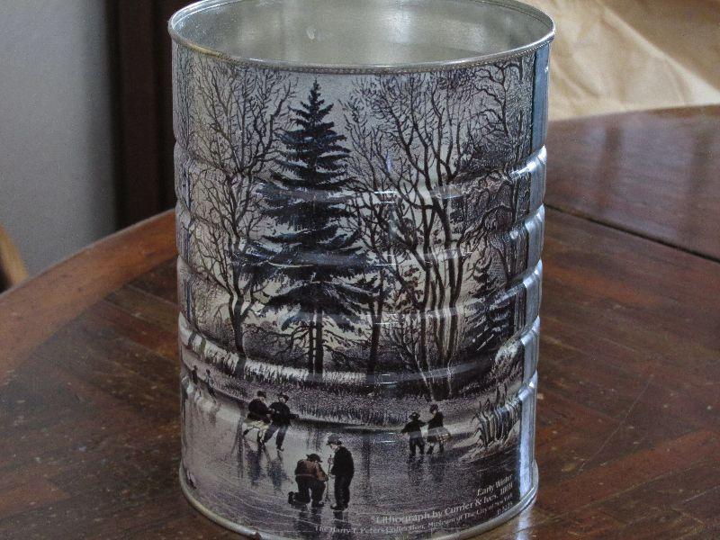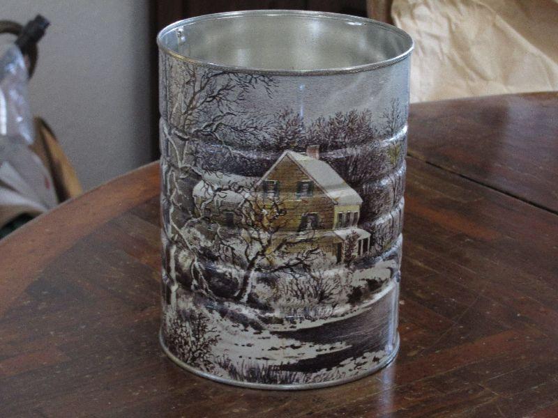 Vintage Folgers Coffee Can with lithograph of "Early Winter"