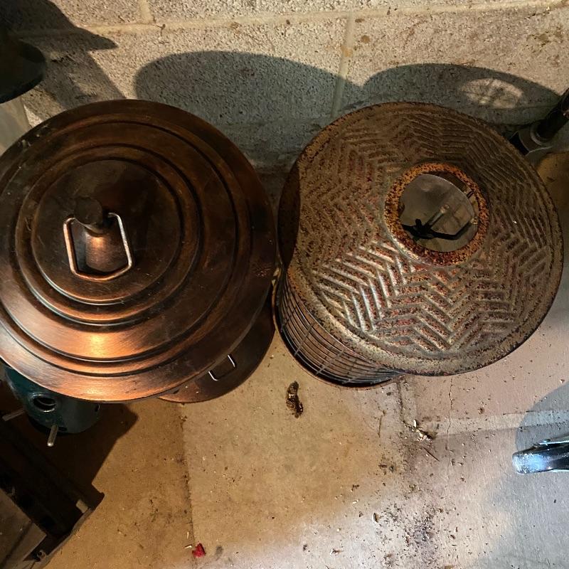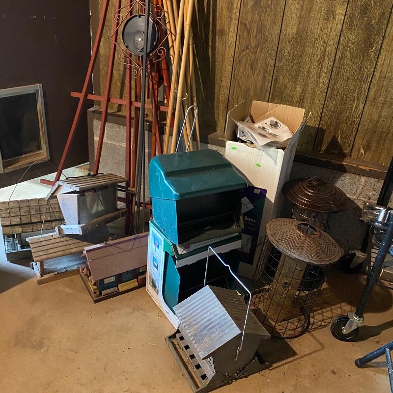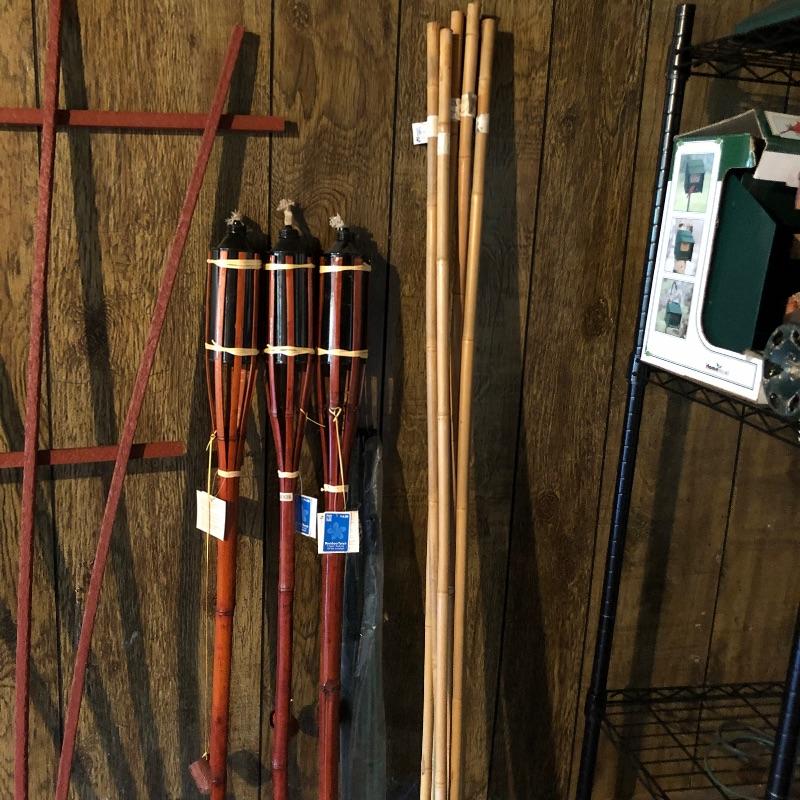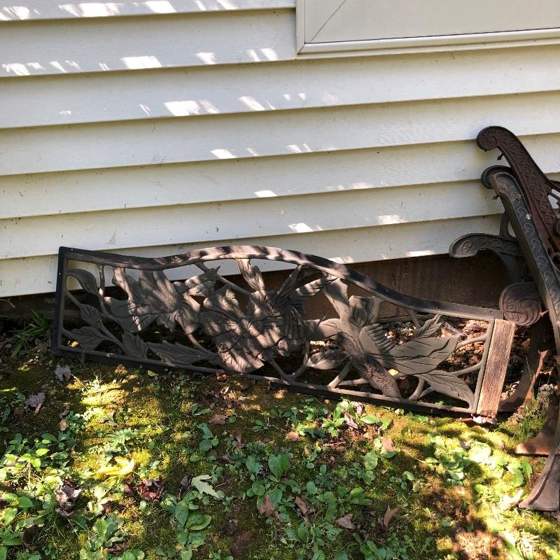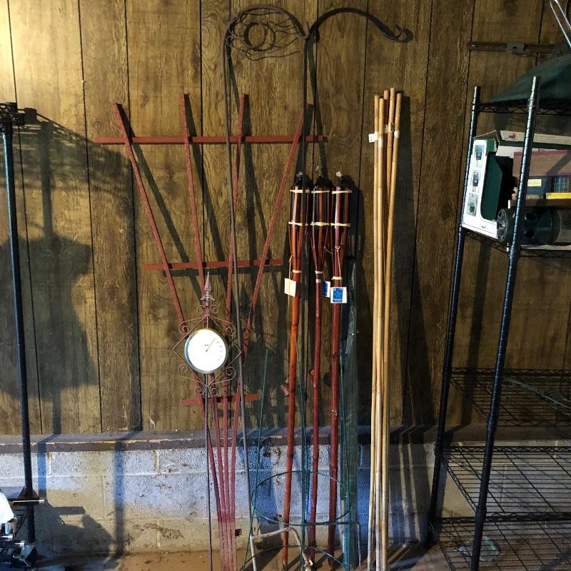 Tired of those fluffy tailed nuisances stealing all your bird food, then this lots for you! Over 10 bird feeders are included here and whilst not all of them are squirrel proof, many are that includes a brand new Homestead feeder. We have also included a brand new Baffle to add to one of the two poles that comes with this lot.Two scoops are included to help you fill all these feeders. There is also one bird house. One metal top feeder is missing its top hanging attachment. This feeder measures 15” tall. To further enhance your outdoor space, we have included a cast iron bench. This bench is just the ends and the back. You will need to add the wood seat to be make it functional. Lot also has tiki torches, a wood trellis and various garden stakes, see images.