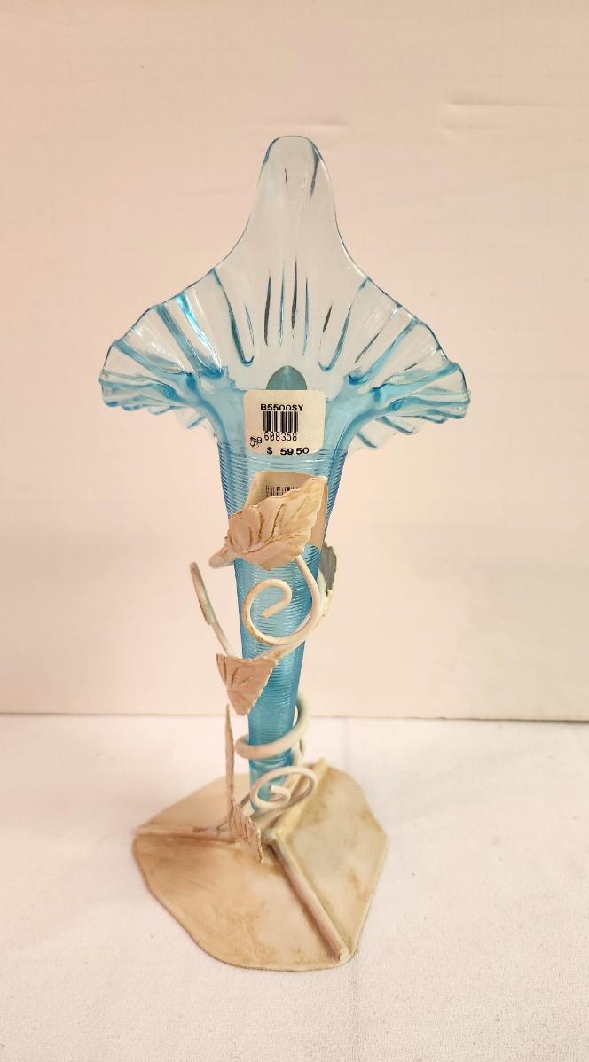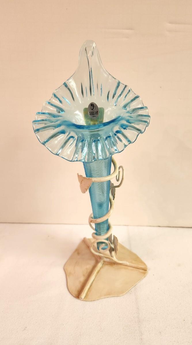 Beautiful Fenton Jack in the Pulpit Vase - single epergne in metal holder. 10 3/8" tall - no box Hard to find Off White color on stand. Has label.