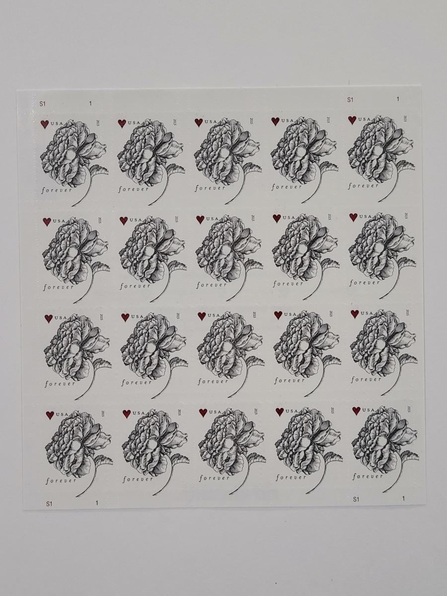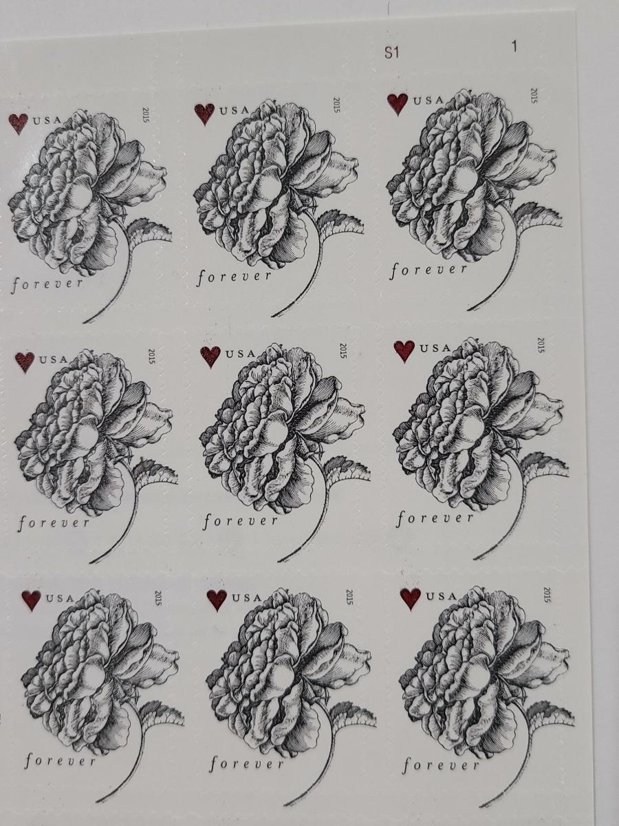 The 2015 black and white floral stamps are a harder to find sheet that is perfect for wedding invitations. Please see all pictures of the stamp sets. Each set has never been hinged, and were stored in a binder until now. These will come as individual sheets. You will get the sets shown in the pictures. These can still be used today, while the retail value is 58 cents a stamp, these sheets are collectible and most sell for $15-$20 a sheet and higher online. Please email with any questions.