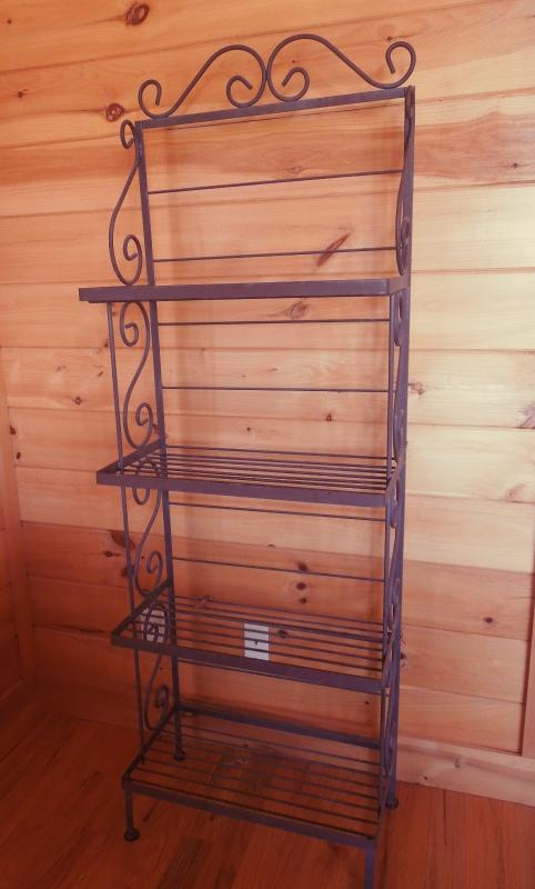 Lot 27: Four Shelf Rusted Look Scrolled Iron Plant Stand or Bakers Rack