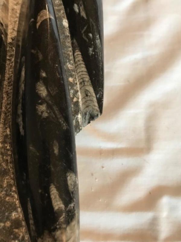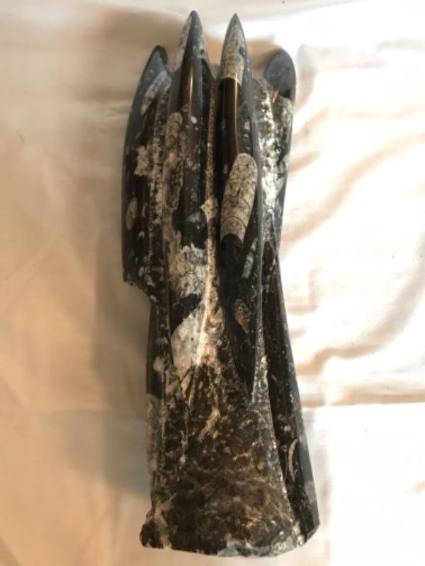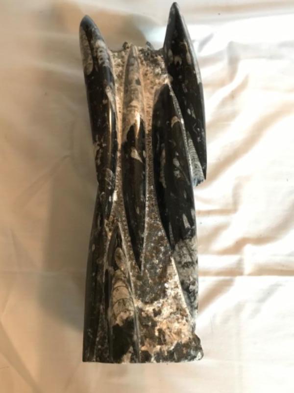 Black, white and gray polished stone sculpture. Measures 15-1/4” tall. Does have a small chip (see pictures)