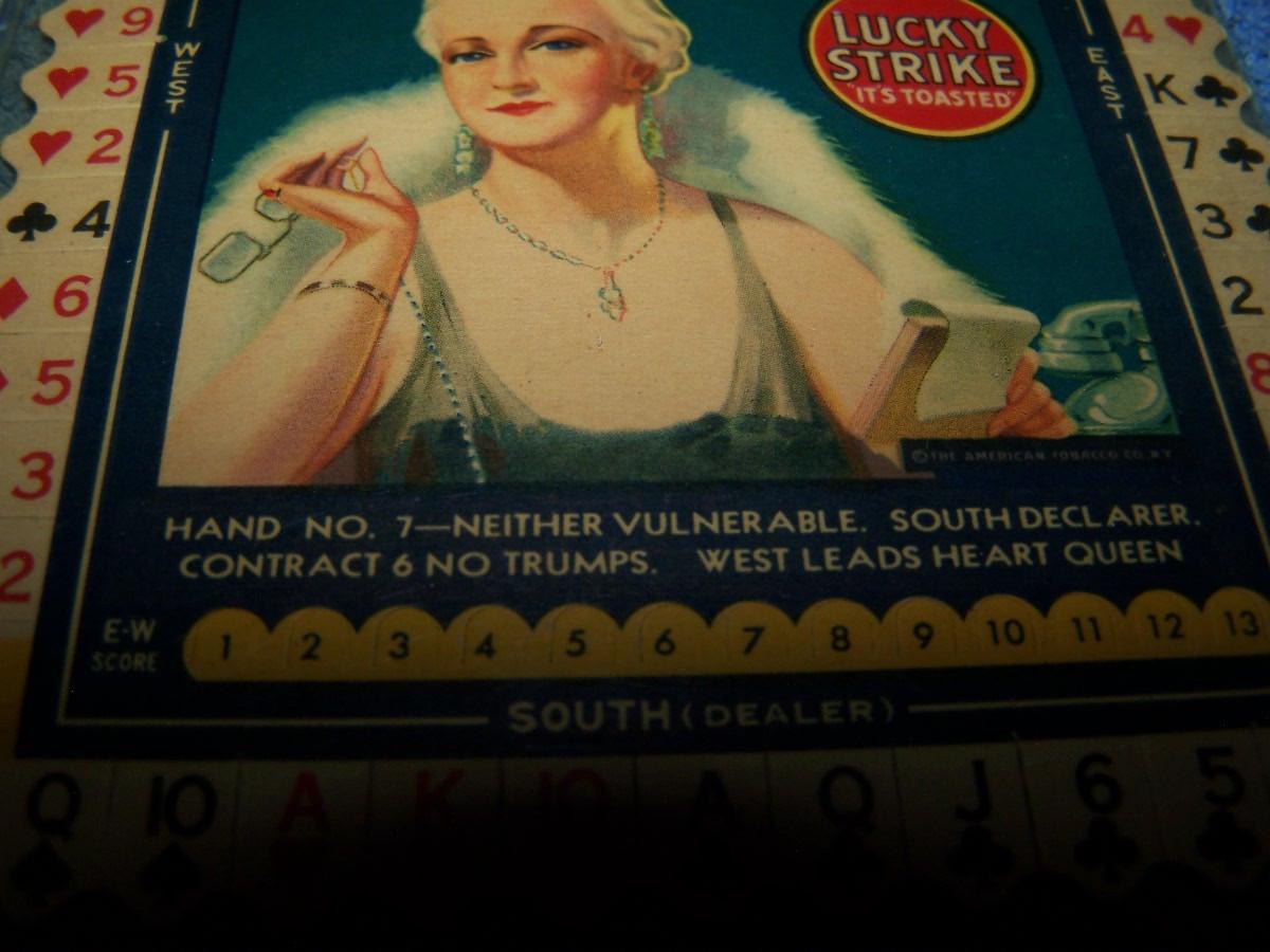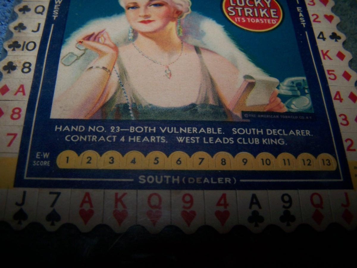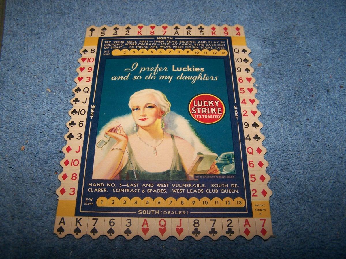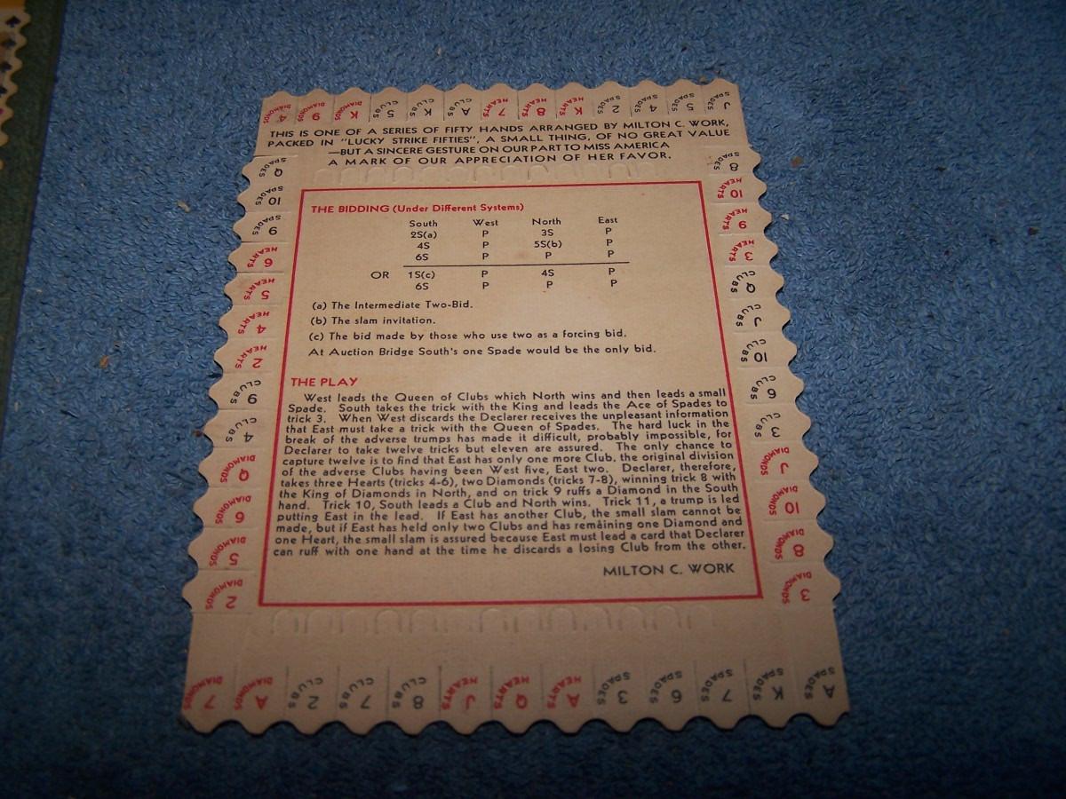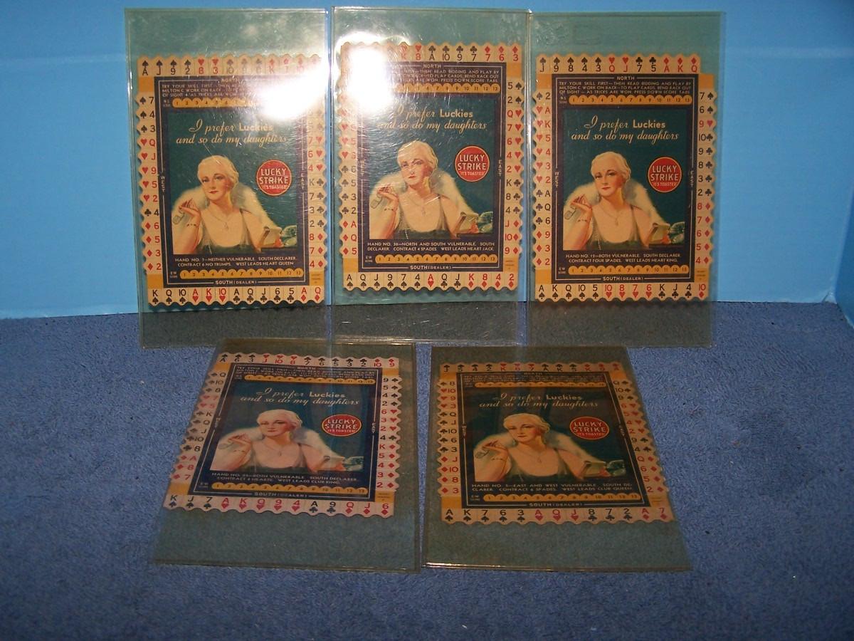 THESE ARE GREAT VINTAGE LUCKY STRIKE BRIDGE GAME CARDS!!! EACH A DIFFERENT HAND... IN PLASTIC SLEEVES.. SLIGHT WEAR TO CARDS...