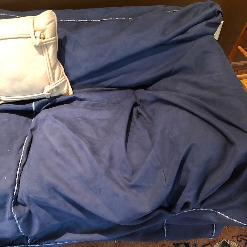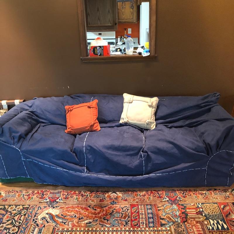 Lot 27 - Green Couch w/ Blue Fabric Cover