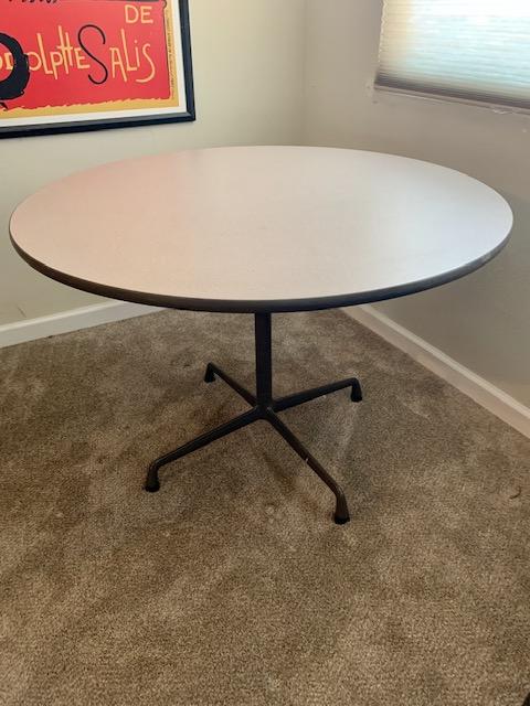 Round Herman Miller Conference Table. Formica Top, Label on Bottom.