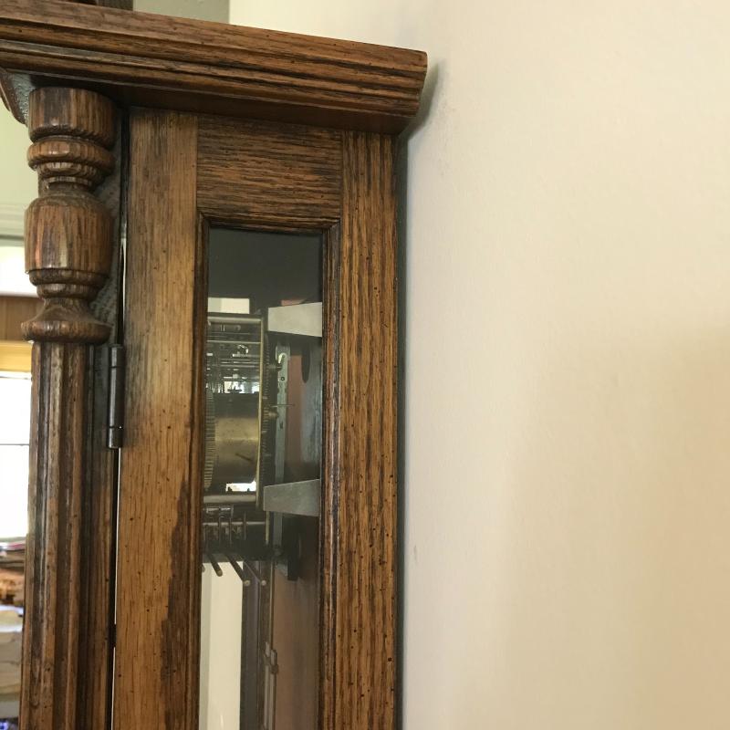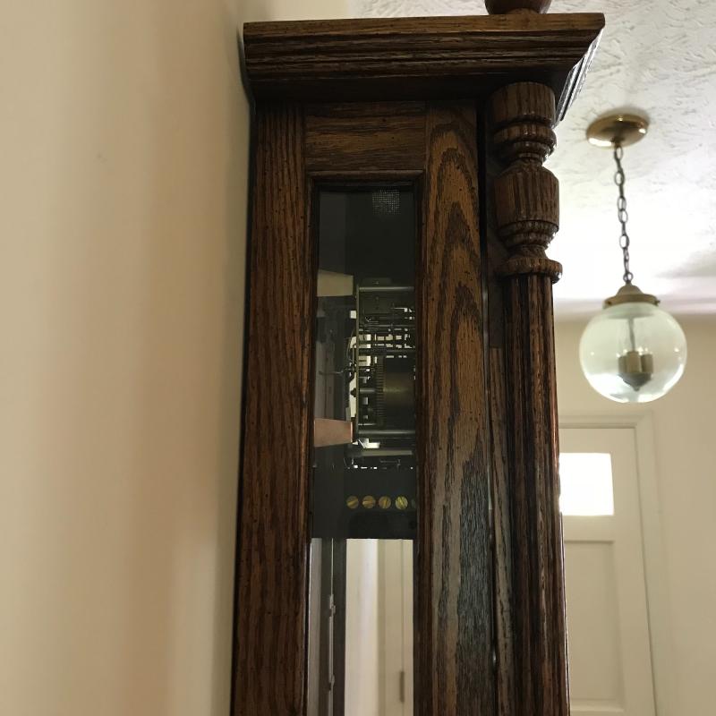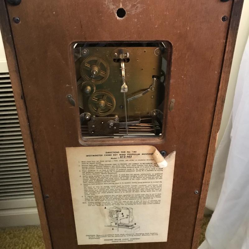 This Howard Miller Co. ornate grandmother clock is gorgeous! Glass sides to see all the intricate insides. Appears to be in excellent condition and in working order, but key was not tested. Measures approx. 12” x 31”. Local pick up only.