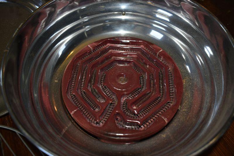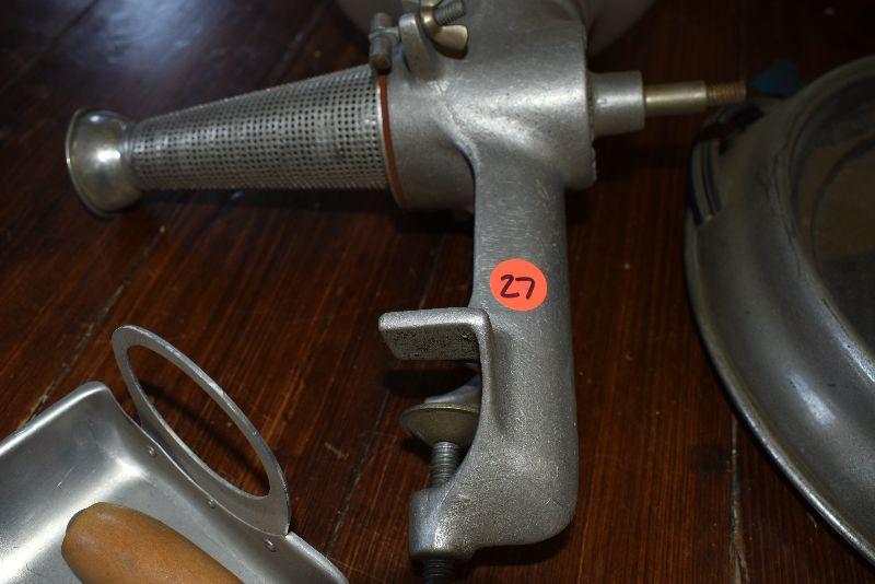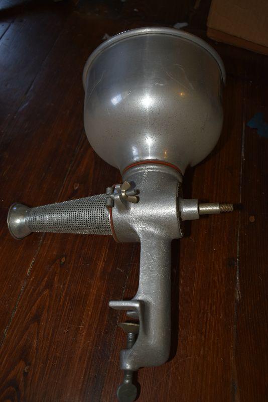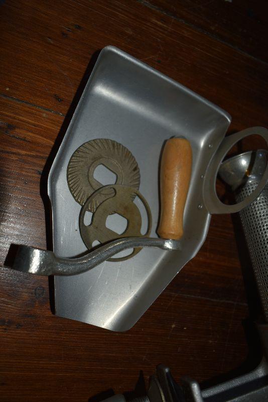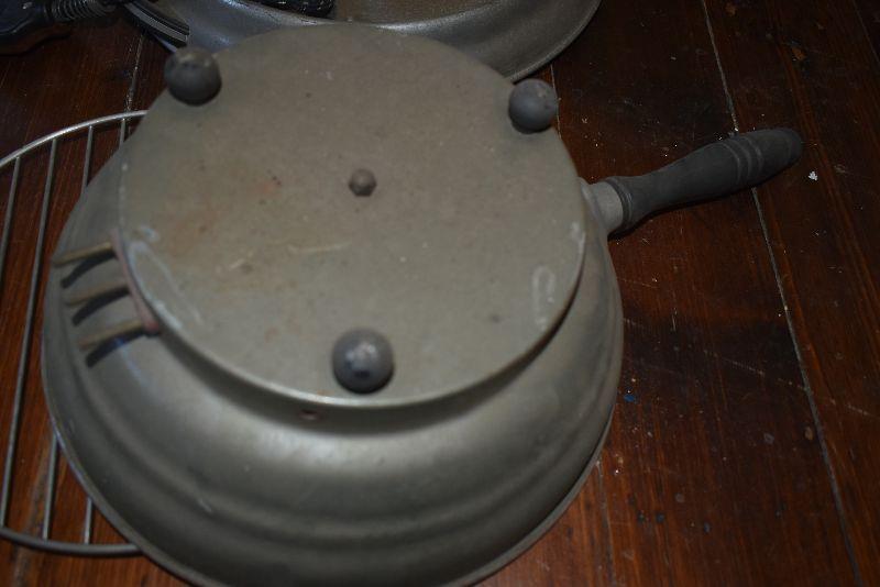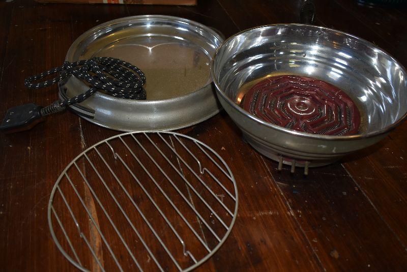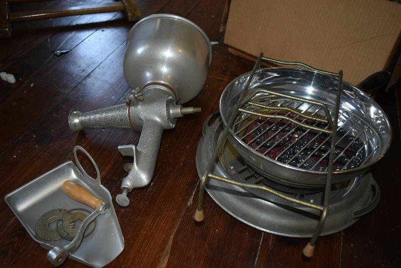 Vintage metal meat grinder with attachments. Also an electric cooking unit. Move from second floor.
